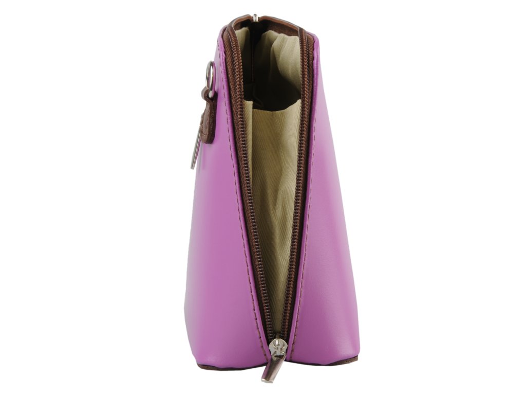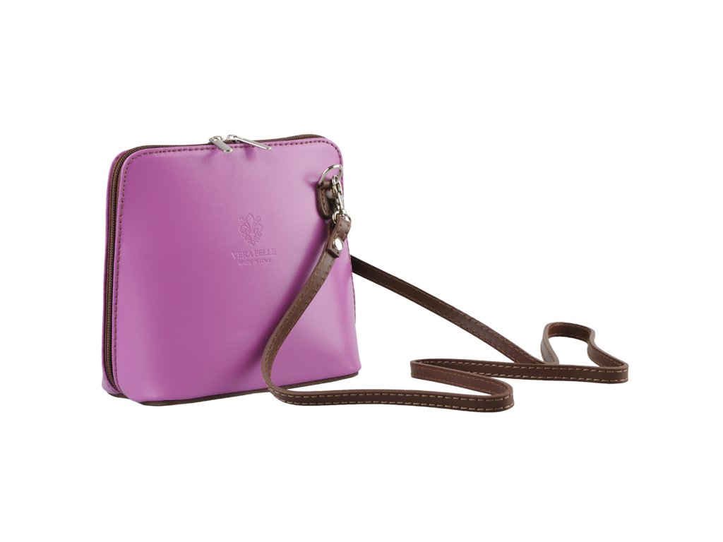 Elegantná, no zároveň veľmi praktická kabelka malých rozmerov vyrobená z pravej kože v ružovej farbe. Vďaka tenkému popruhu je nositeľná cez rameno. Zips, ktorým sa uzatvára, vedie po hrane kabelky až po spodný okraj na oboch stranách, a preto je jej vnútro dobre dostupné. Na vonkajšej zadnej strane nájdete na kabelke malé vrecko na zips a vo vnútri delí celý priestor na dve časti priečka, ktorá súčasne slúži ako vrecko na zips. Hĺbka jej dna je 8 cm. Dĺžka prídavného popruhu je cca 120 cm.