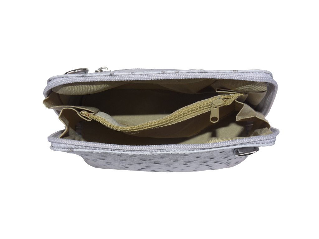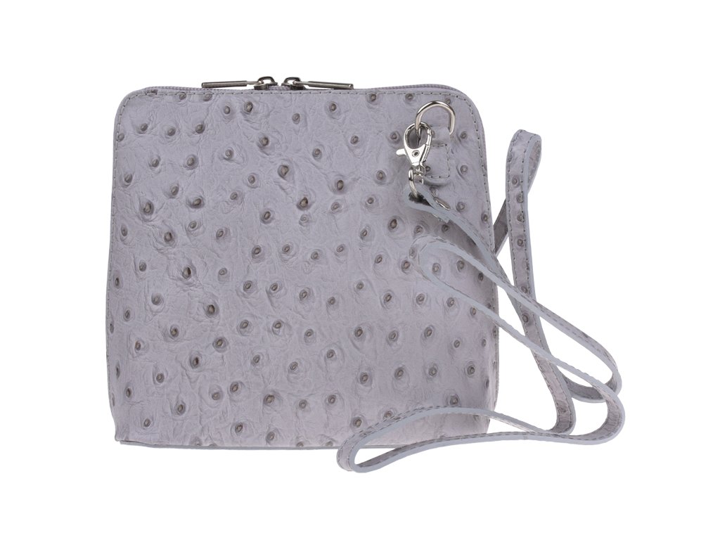 Elegantná, no zároveň veľmi praktická kabelka malých rozmerov vyrobená z pravej kože v sivej farbe. Vďaka tenkému popruhu je nositeľná cez rameno. Zips, ktorým sa uzatvára, vedie po hrane kabelky až po spodný okraj na oboch stranách, a preto je jej vnútro dobre dostupné. Na vonkajšej zadnej strane nájdete na kabelke malé vrecko na zips a vo vnútri delí celý priestor na dve časti priečka, ktorá súčasne slúži ako vrecko na zips. Hĺbka jej dna je 8 cm. Dĺžka prídavného popruhu je cca 120 cm.