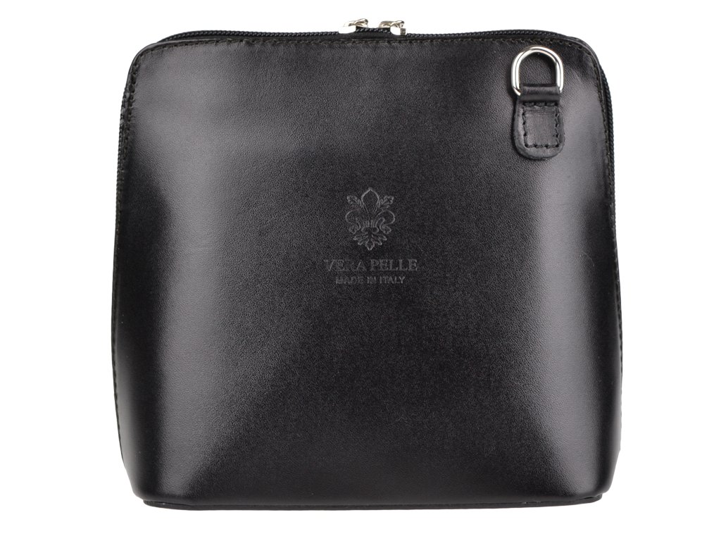 Elegantná, no zároveň veľmi praktická čierna kabelka malých rozmerov vyrobená z pravej kože. Vďaka tenkému popruhu je nositeľná cez rameno. Zips, ktorým sa uzatvára, vedie po hrane kabelky až po spodný okraj na oboch stranách, a preto je jej vnútro dobre dostupné. Na vonkajšej zadnej strane nájdete na kabelke malé vrecko na zips a vo vnútri delí celý priestor na dve časti priečka, ktorá súčasne slúži ako vrecko na zips. Hĺbka jej dna je 8 cm.