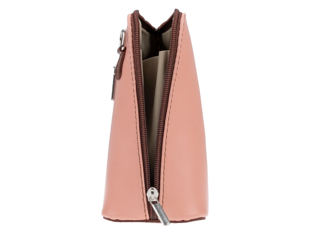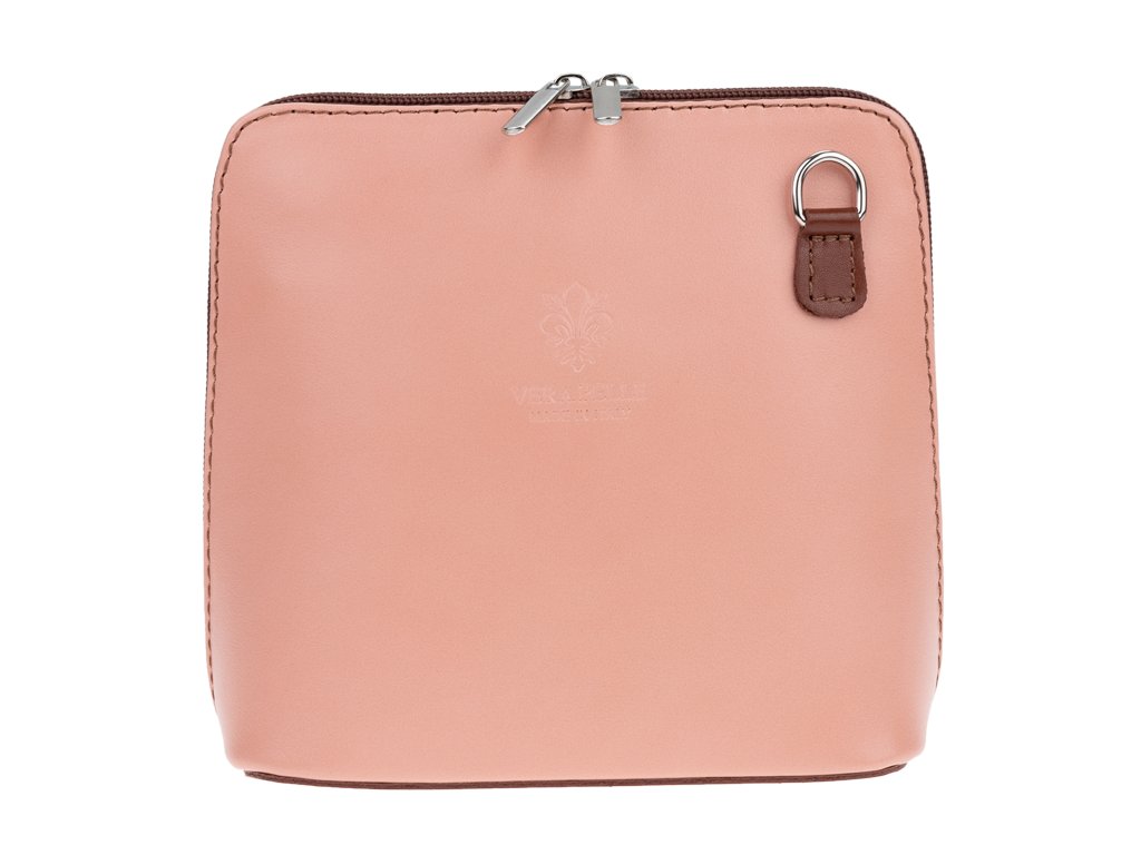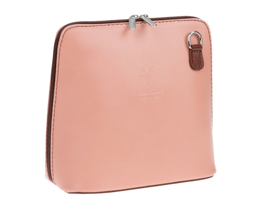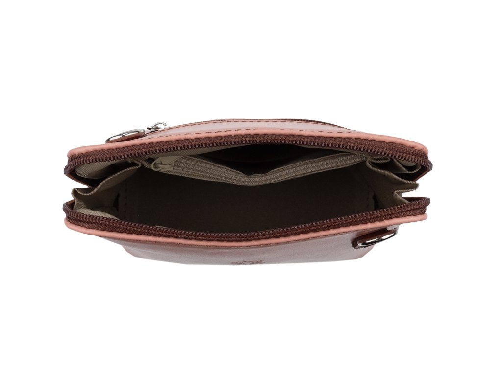 Elegantná, no zároveň veľmi praktická ružová kabelka malých rozmerov vyrobená z pravej kože. Vďaka tenkému popruhu je nositeľná cez rameno. Zips, ktorým sa uzatvára, vedie po hrane kabelky až po spodný okraj na oboch stranách, a preto je jej vnútro dobre dostupné. Na vonkajšej zadnej strane nájdete na kabelke malé vrecko na zips a vo vnútri delí celý priestor na dve časti priečka, ktorá súčasne slúži ako vrecko na zips. Hĺbka jej dna je 8 cm. Dĺžka prídavného popruhu je cca 120 cm.