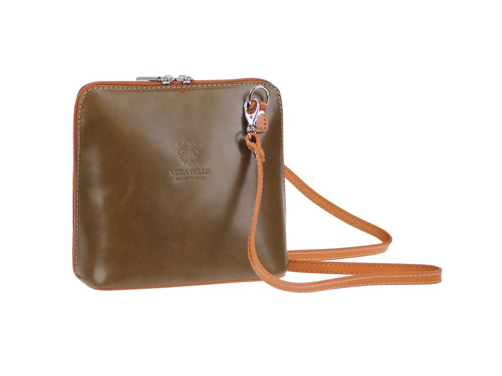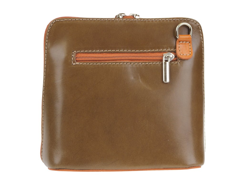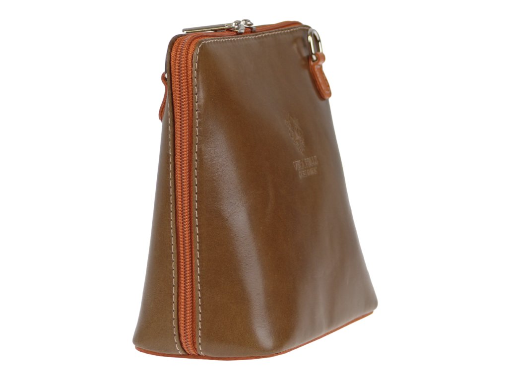 Elegantná, no zároveň veľmi praktická hnedá kabelka malých rozmerov vyrobená z pravej kože. Vďaka tenkému popruhu je nositeľná cez rameno. Zips, ktorým sa uzatvára, vedie po hrane kabelky až po spodný okraj na oboch stranách, a preto je jej vnútro dobre dostupné. Na vonkajšej zadnej strane nájdete na kabelke malé vrecko na zips a vo vnútri delí celý priestor na dve časti priečka, ktorá súčasne slúži ako vrecko na zips. Hĺbka jej dna je 8 cm.