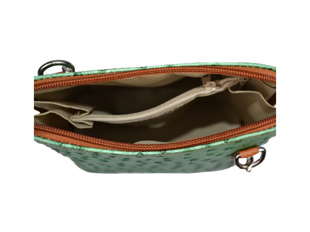 Elegantná, no zároveň veľmi praktická kabelka malých rozmerov vyrobená z pravej kože. Vďaka tenkému popruhu je nositeľná cez rameno. Zips, ktorým sa uzatvára, vedie po hrane kabelky až po spodný okraj na oboch stranách, a preto je jej vnútro dobre dostupné. Na vonkajšej zadnej strane nájdete na kabelke malé vrecko na zips a vo vnútri delí celý priestor na dve časti priečka, ktorá súčasne slúži ako vrecko na zips. Hĺbka jej dna je 8 cm. Dĺžka prídavného popruhu je cca 120 cm.