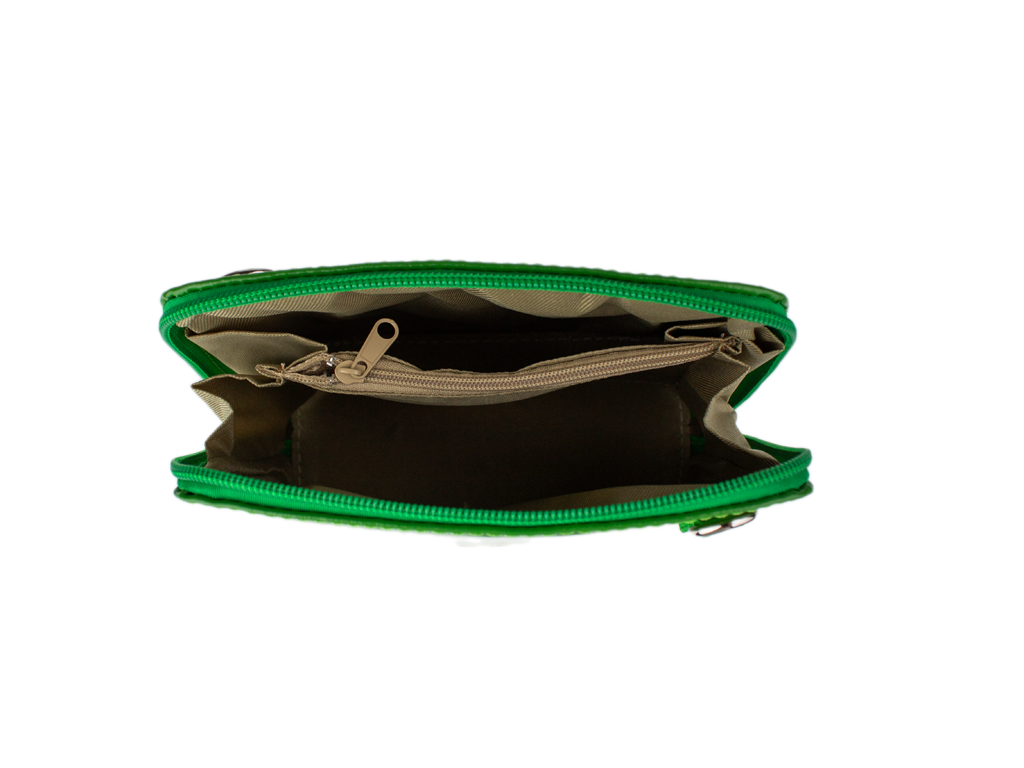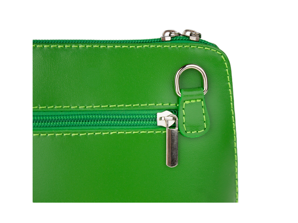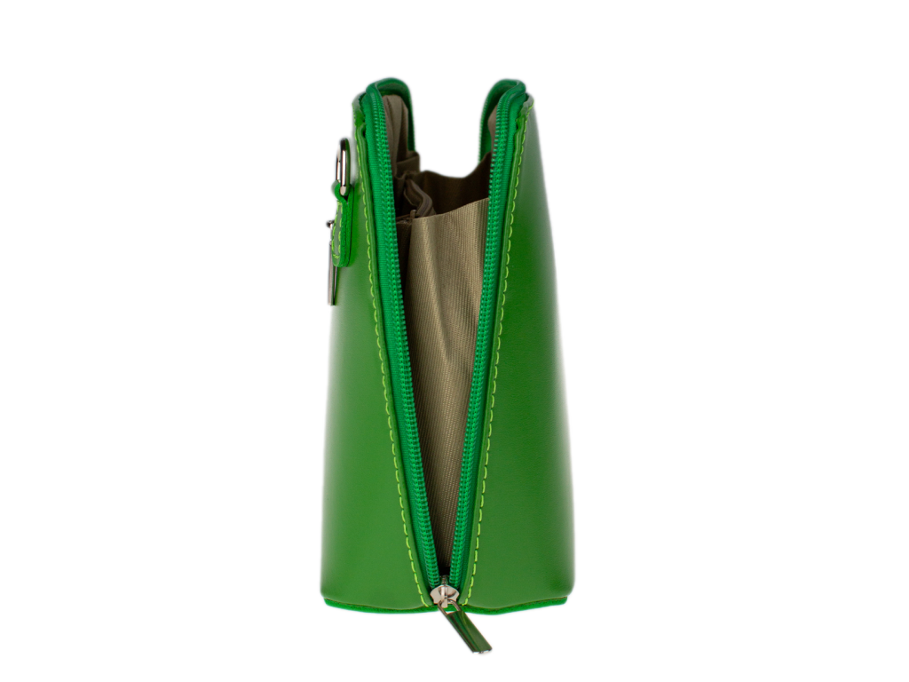 Elegantná, no zároveň veľmi praktická kabelka malých rozmerov vyrobená z pravej kože. Vďaka tenkému popruhu je nositeľná cez rameno. Zips, ktorým sa uzatvára, vedie po hrane kabelky až po spodný okraj na oboch stranách, a preto je jej vnútro dobre dostupné. Na vonkajšej zadnej strane nájdete na kabelke malé vrecko na zips a vo vnútri delí celý priestor na dve časti priečka, ktorá súčasne slúži ako vrecko na zips. Hĺbka jej dna je 8 cm. Dĺžka prídavného popruhu je cca 120 cm.