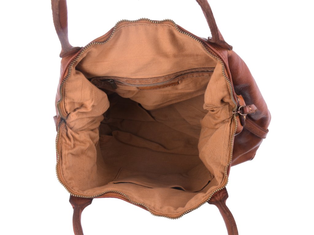 Kožená a priestranná kabelka v tmavo hnedej farbe. Jednoduchý dizajn a množstvo priestoru z nej vytvára praktickú tašku, ktorá je vhodná na každodenné nosenie, do práce alebo školy. Vnútro kabelky disponuje vreckom na zips. Súčasťou balenia je nastaviteľný popruh s maximálnou dĺžkou cca 125 cm.
