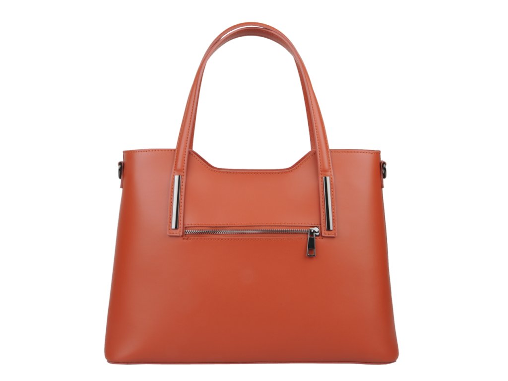 Elegantná kabelka značky Vera Pelle je vyrobená z prírodnej, pevnej a hladkej kože. Na zadnej vonkajšej strane kabelky sa nachádza malé vrecko na zips. Vo vnútri sa nachádza priehradka, ktorá zároveň slúži ako vrecko na zips. Po bočných stenách kabelky nájdeme 1 malé vrecko na zips a 2 otvorené vrecka na drobnosti.
