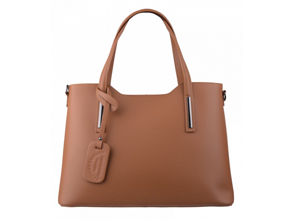 Elegantná kabelka značky Vera Pelle je vyrobená z prírodnej, pevnej a hladkej kože. Na zadnej vonkajšej strane kabelky sa nachádza malé vrecko na zips. Vo vnútri sa nachádza priehradka, ktorá zároveň slúži ako vrecko na zips. Po bočných stenách kabelky nájdeme 1 malé vrecko na zips a 2 otvorené vrecka na drobnosti.
