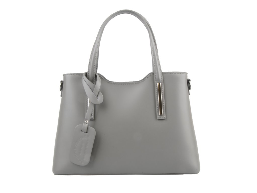 Rozkošná kabelka s jednoduchým, ale veľmi elegantným dizajnom v taupe farbe. Kabelka je vyrobená z prírodnej, pevnej a hladkej kože. Kabelka značky VERA PELLE sa uzatvára na zips. Vnútro kabelky disponuje priehradkou, ktorá slúži ako vrecko na zips, na bočných stenách nájdeme jedno malé vrecko na zips a dve otvorené vrecká na drobnosti.