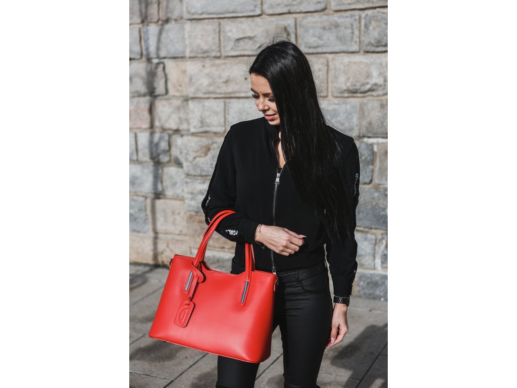 Elegantná kabelka značky Vera Pelle je vyrobená z prírodnej, pevnej a hladkej kože. Na zadnej vonkajšej strane kabelky sa nachádza malé vrecko na zips. Vo vnútri sa nachádza priehradka, ktorá zároveň slúži ako vrecko na zips. Po bočných stenách kabelky nájdeme 1 malé vrecko na zips a 2 otvorené vrecka na drobnosti.