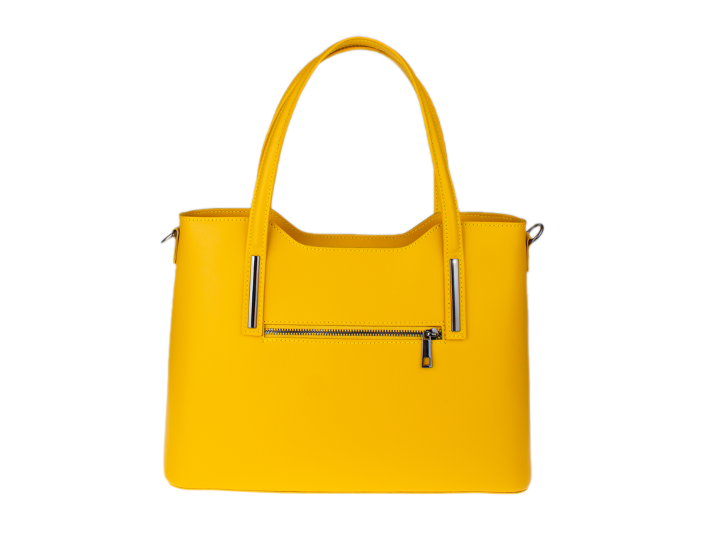 Elegantná kabelka značky Vera Pelle je vyrobená z prírodnej, pevnej a hladkej kože. Na zadnej vonkajšej strane kabelky sa nachádza malé vrecko na zips. Vo vnútri sa nachádza priehradka, ktorá zároveň slúži ako vrecko na zips. Po bočných stenách kabelky nájdeme 1 malé vrecko na zips a 2 otvorené vrecka na drobnosti.