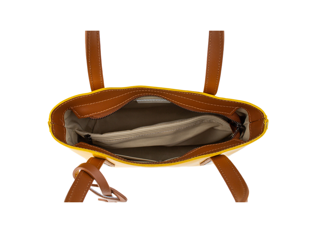 Rozkošná kabelka s jednoduchým, ale veľmi elegantným dizajnom. Kabelka je vyrobená z prírodnej, pevnej a hladkej kože. Kabelka značky VERA PELLE sa uzatvára na zips. Vnútro kabelky disponuje priehradkou, ktorá slúži ako vrecko na zips, na bočných stenách nájdeme jedno malé vrecko na zips a dve otvorené vrecká na drobnosti.