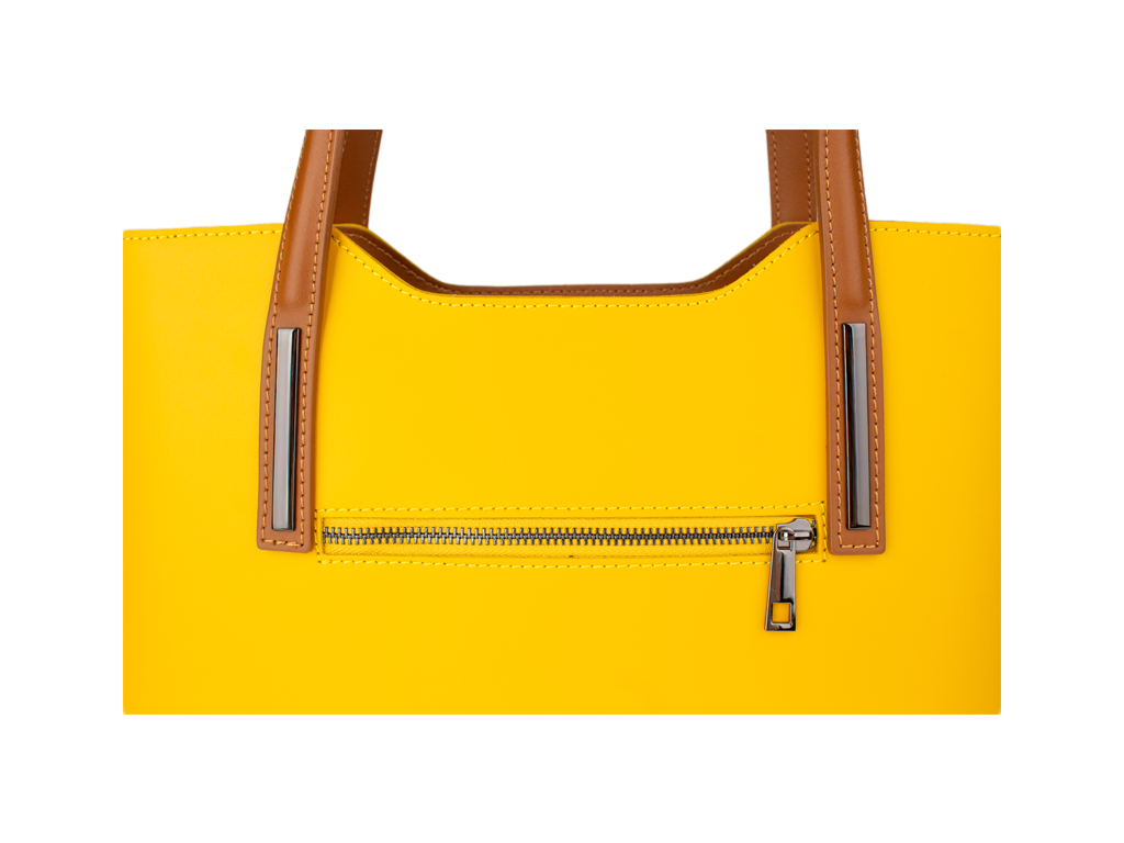 Elegantná kabelka značky Vera Pelle je vyrobená z prírodnej, pevnej a hladkej kože. Na zadnej vonkajšej strane kabelky sa nachádza malé vrecko na zips. Vo vnútri sa nachádza priehradka, ktorá zároveň slúži ako vrecko na zips. Po bočných stenách kabelky nájdeme 1 malé vrecko na zips a 2 otvorené vrecka na drobnosti.