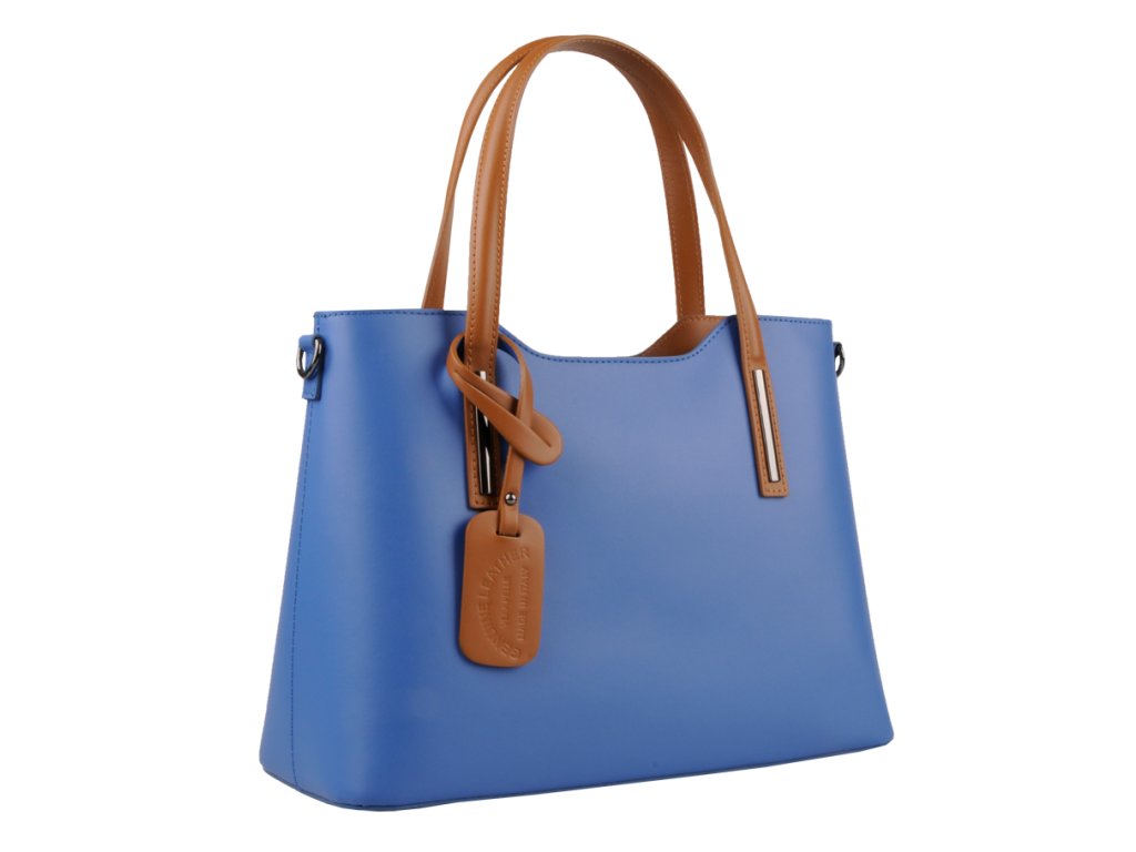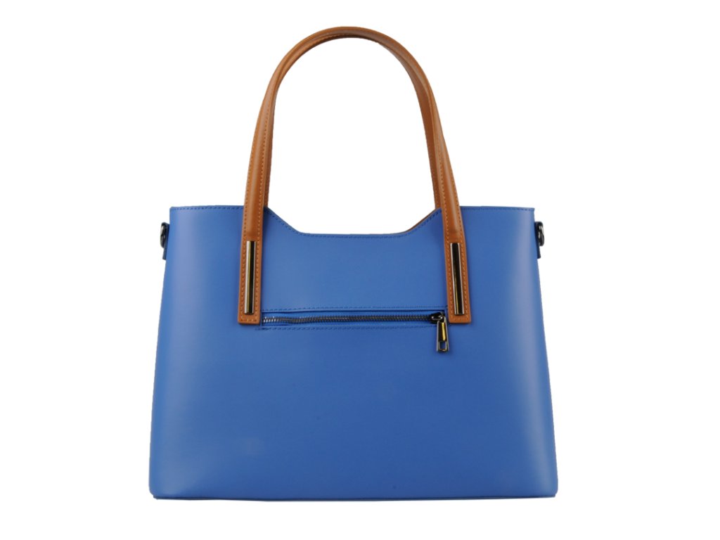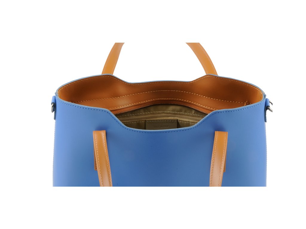 Elegantná kabelka značky Vera Pelle je vyrobená z prírodnej, pevnej a hladkej kože. Na zadnej vonkajšej strane kabelky sa nachádza malé vrecko na zips. Vo vnútri sa nachádza priehradka, ktorá zároveň slúži ako vrecko na zips. Po bočných stenách kabelky nájdeme 1 malé vrecko na zips a 2 otvorené vrecka na drobnosti.
