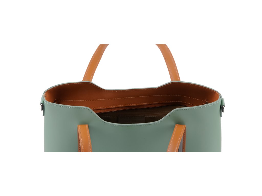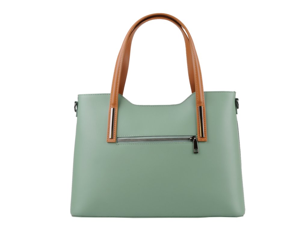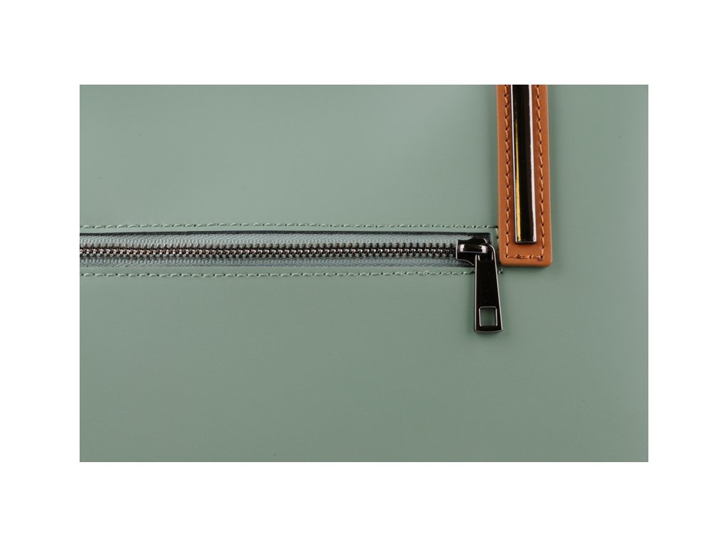 Elegantná kabelka značky Vera Pelle je vyrobená z prírodnej, pevnej a hladkej kože. Na zadnej vonkajšej strane kabelky sa nachádza malé vrecko na zips. Vo vnútri sa nachádza priehradka, ktorá zároveň slúži ako vrecko na zips. Po bočných stenách kabelky nájdeme 1 malé vrecko na zips a 2 otvorené vrecka na drobnosti.