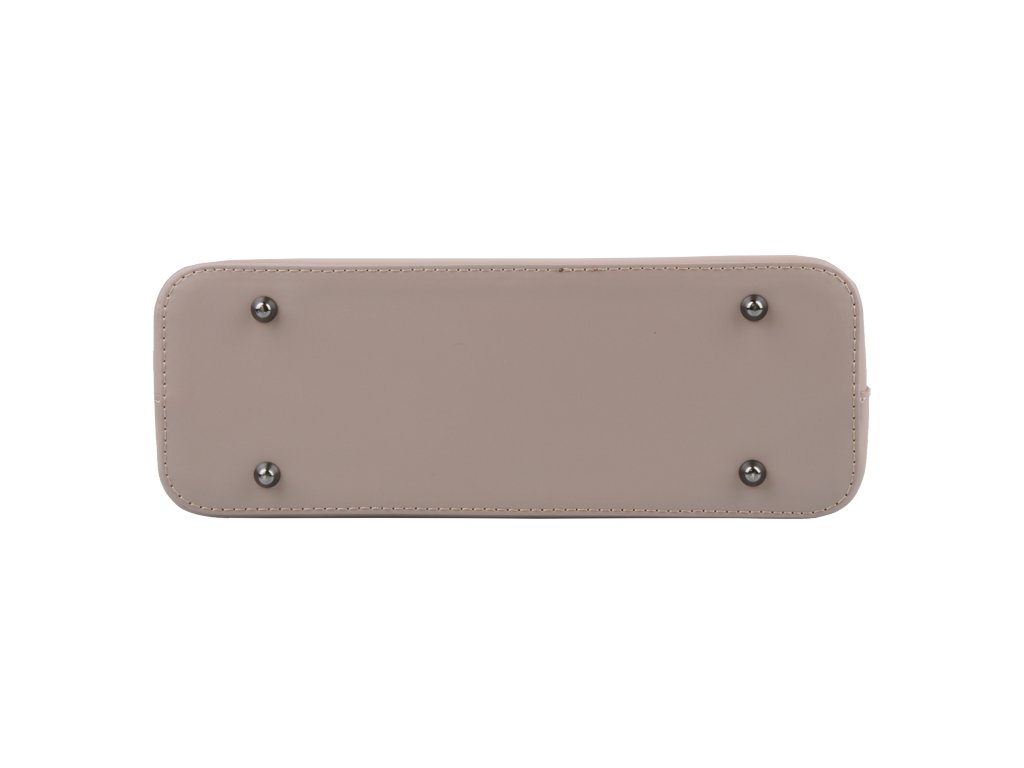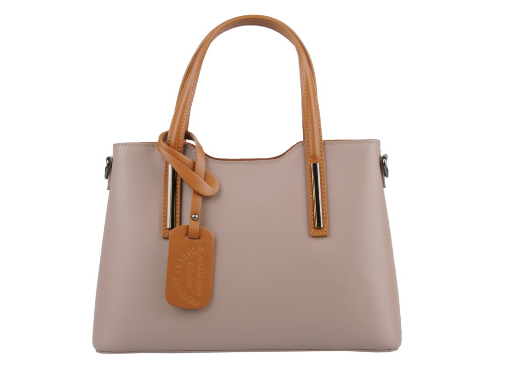 Rozkošná kabelka s jednoduchým, ale veľmi elegantným dizajnom v taupe farbe. Kabelka je vyrobená z prírodnej, pevnej a hladkej kože. Kabelka značky VERA PELLE sa uzatvára na zips. Vnútro kabelky disponuje priehradkou, ktorá slúži ako vrecko na zips, na bočných stenách nájdeme jedno malé vrecko na zips a dve otvorené vrecká na drobnosti.