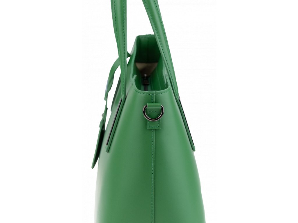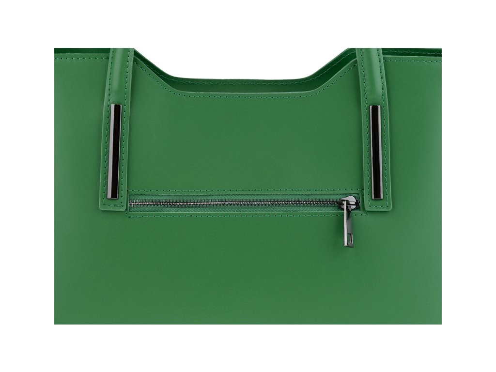 Elegantná kabelka značky Vera Pelle je vyrobená z prírodnej, pevnej a hladkej kože. Na zadnej vonkajšej strane kabelky sa nachádza malé vrecko na zips. Vo vnútri sa nachádza priehradka, ktorá zároveň slúži ako vrecko na zips. Po bočných stenách kabelky nájdeme 1 malé vrecko na zips a 2 otvorené vrecka na drobnosti.