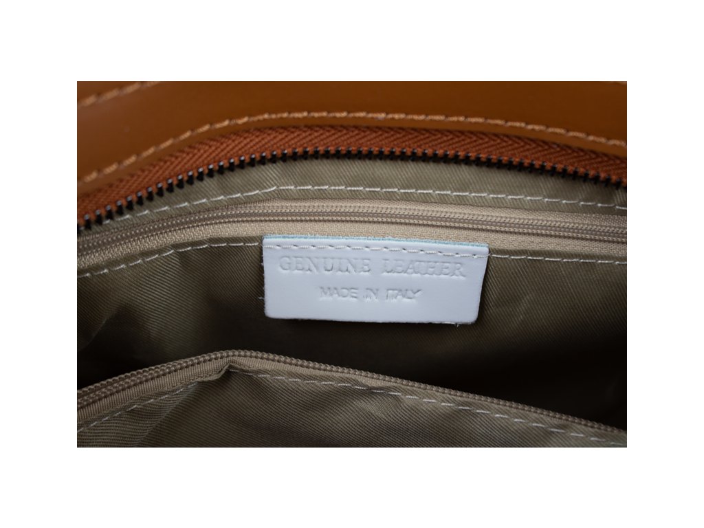 Rozkošná kabelka s jednoduchým, ale veľmi elegantným dizajnom. Kabelka je vyrobená z prírodnej, pevnej a hladkej kože. Kabelka značky VERA PELLE sa uzatvára na zips. Vnútro kabelky disponuje priehradkou, ktorá slúži ako vrecko na zips, na bočných stenách nájdeme jedno malé vrecko na zips a dve otvorené vrecká na drobnosti.