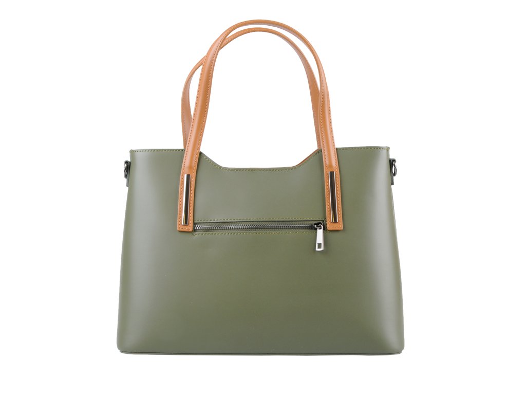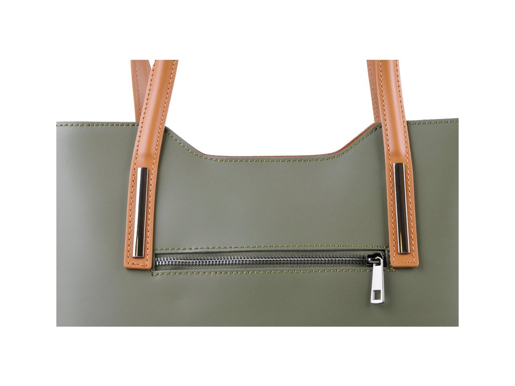 Elegantná kabelka značky Vera Pelle je vyrobená z prírodnej, pevnej a hladkej kože. Na zadnej vonkajšej strane kabelky sa nachádza malé vrecko na zips. Vo vnútri sa nachádza priehradka, ktorá zároveň slúži ako vrecko na zips. Po bočných stenách kabelky nájdeme 1 malé vrecko na zips a 2 otvorené vrecka na drobnosti.