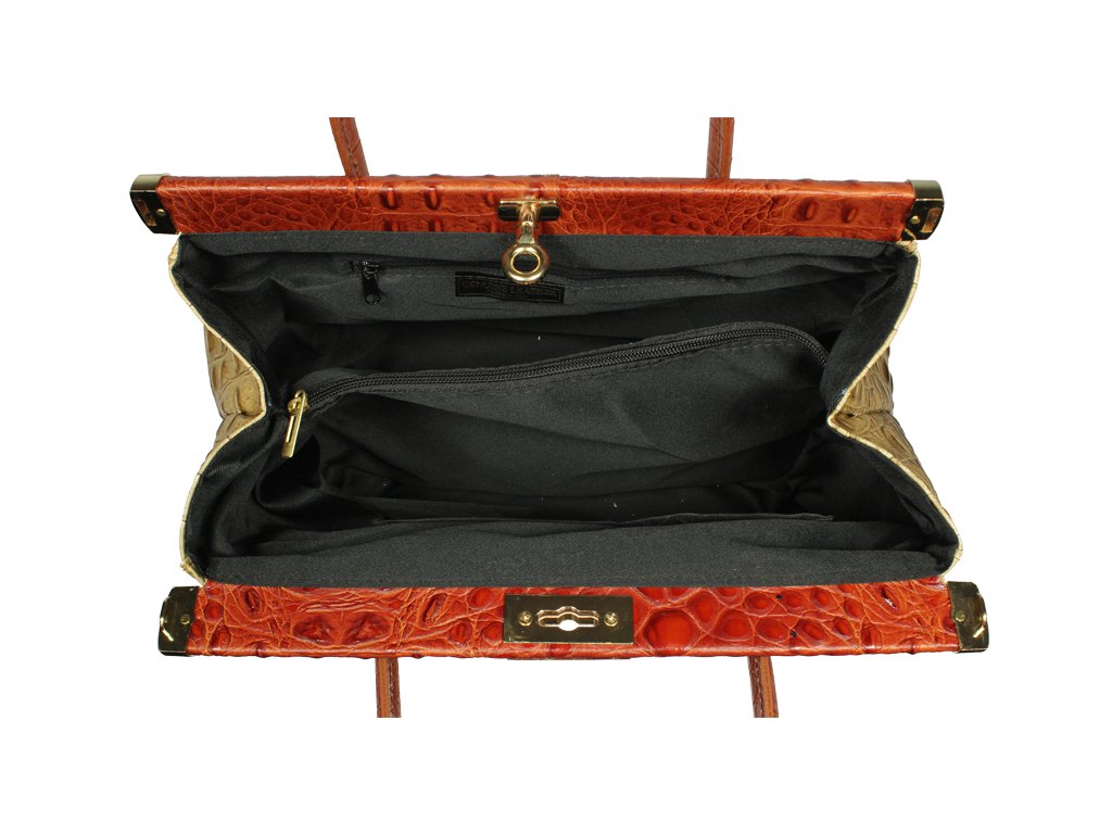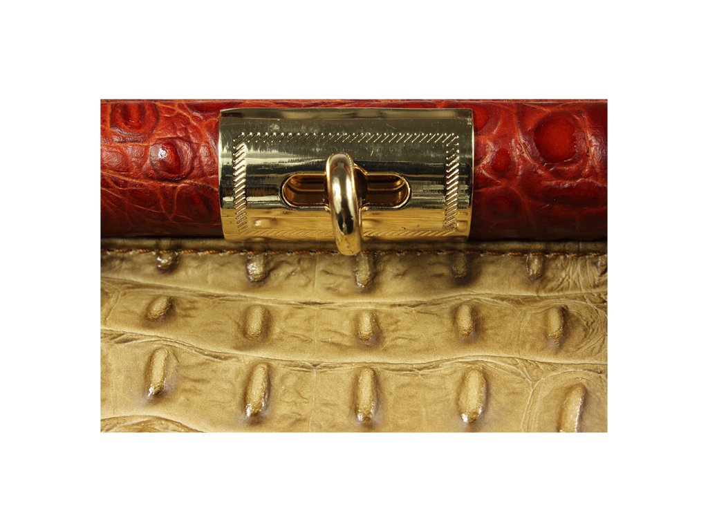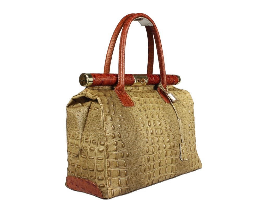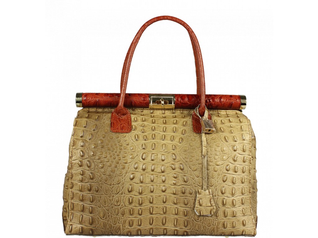 Táto "doktorská" kabelka Vás okrem svojho klasického designu zaujme tým, že dobre drží svoj tvar. Je vyrobená z pravej kože s úpravou krokodílej textúry. Je vhodná na nosenie do ruky a je možné využiť i prídavný popruh - cca 100 cm, ktorý je súčasťou balenia. Vo vnútri nájdete dve malé uzatvárateľné vrecká a dve praktické otvorené priehradky. Na vonkajšej strane kabelky sa okrem toho nachádza ešte jedno vrecko na zips. Hĺbka jej dna je 15 cm.