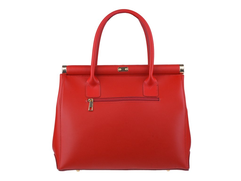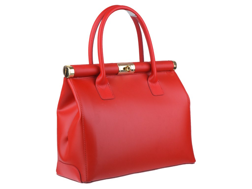 "Doktorská" kabelka s klasickým designom, vyrobená z pravej kože s lesklou úpravou. Táto červená kabelka si veľmi dobre drží tvar a je vhodná na nosenie v ruke i cez rameno, s použitím prídavného popruhu - cca 100 cm, ktorý je súčasťou balenia. Uzatvára sa pomocou patentu, ktorý je možné ďalej uzamknúť malým priloženým zámkom. Kabelka disponuje jedným vreckom na vonkajšej zadnej strane. Vo vnútri nájdete 2 malé vrecká a dve priehradky, vhodné napr. pre mobil alebo peňaženku. Vnútro kabelky je rozdelené na dve časti. Hĺbka jej dna je 15 cm.