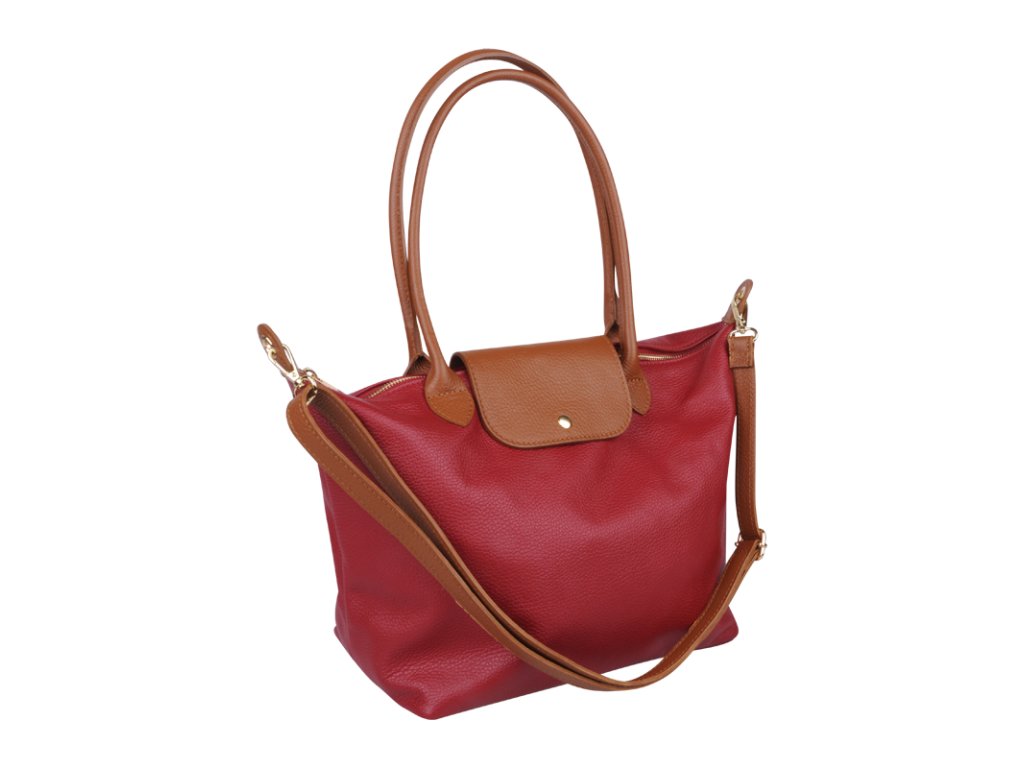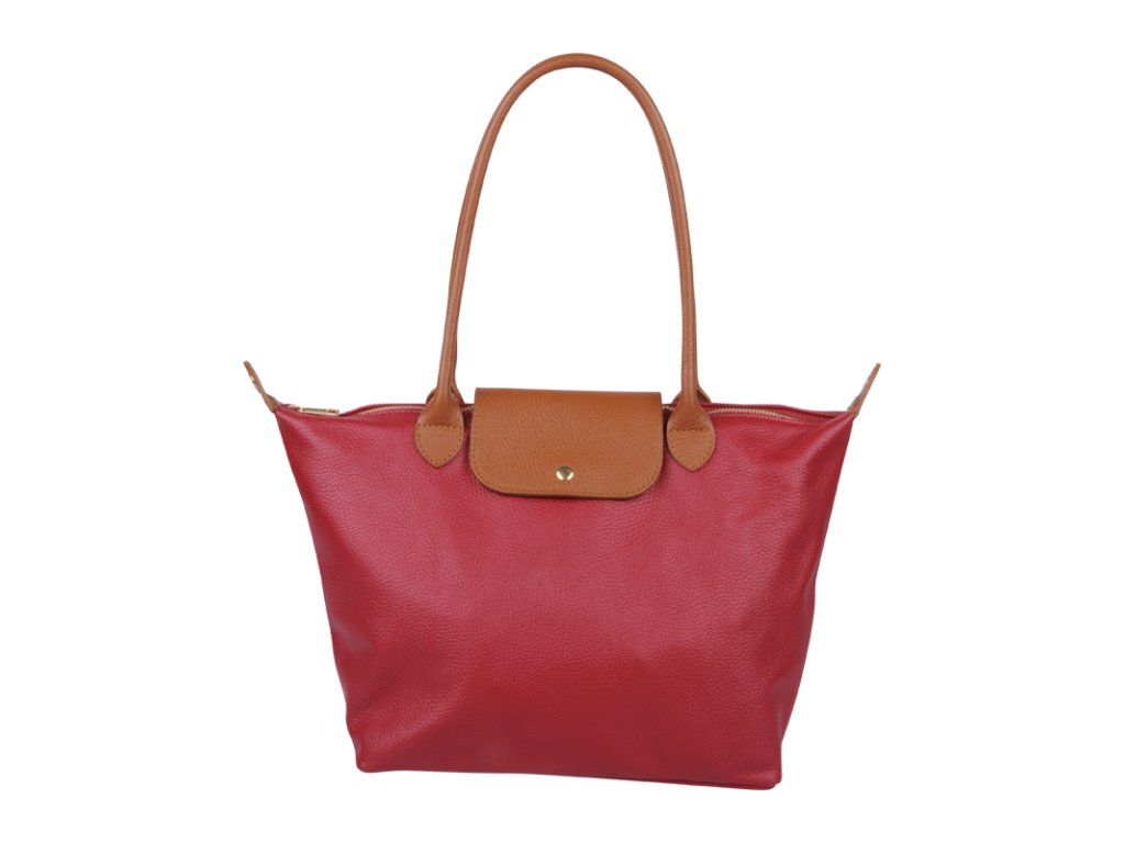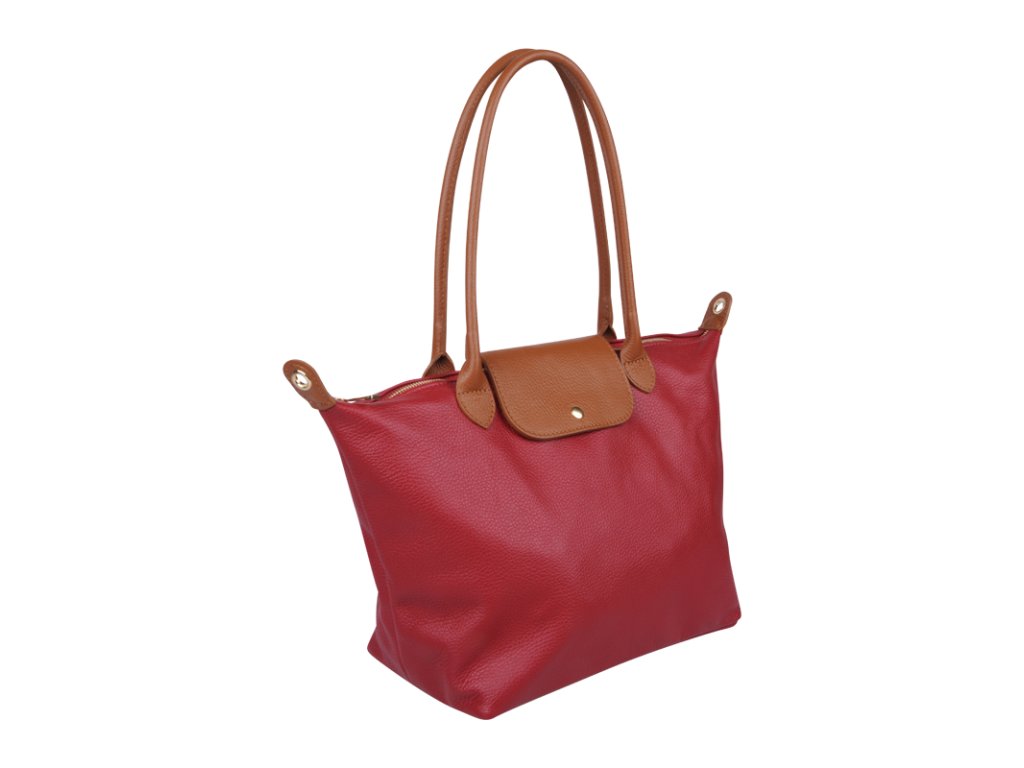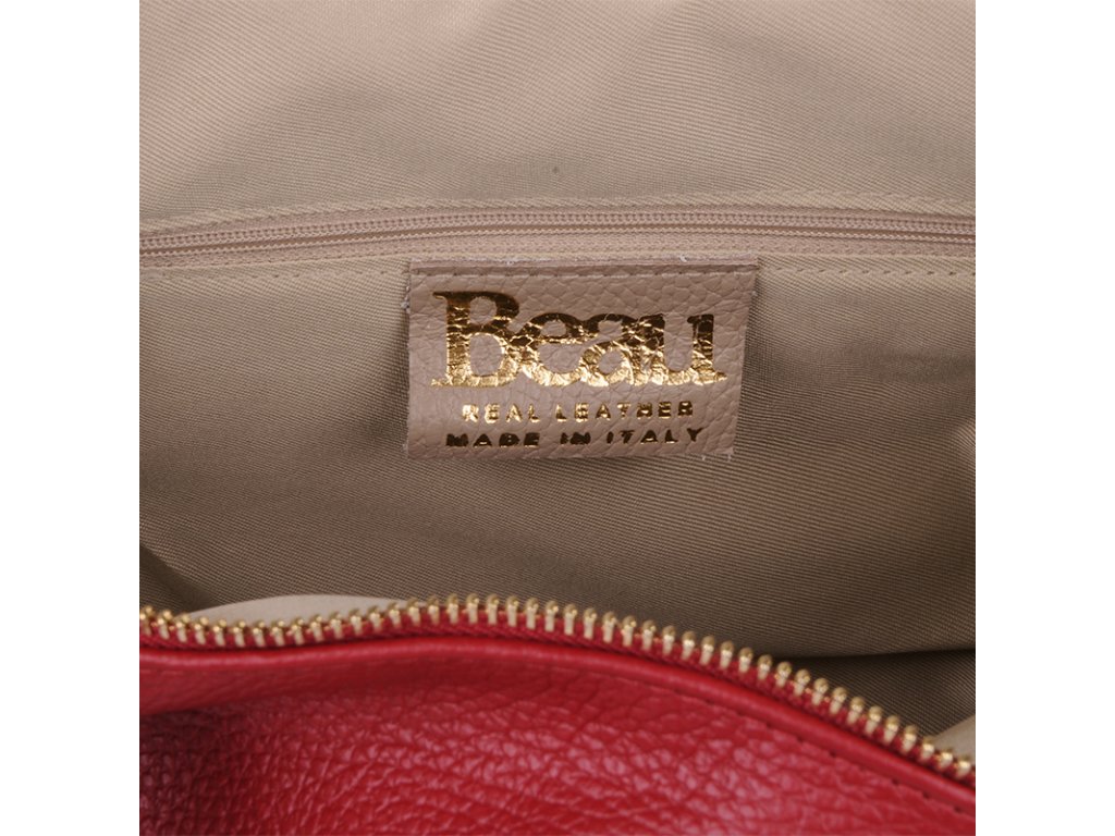 Kožená a priestranná kabelka v červenej farbe. Jednoduchý dizajn a množstvo priestoru z nej vytvára praktickú tašku, ktorá je vhodná na každodenné nosenie, do práce alebo školy. Vnútro kabelky disponuje vreckom na zips. Popruh 120 cm.
