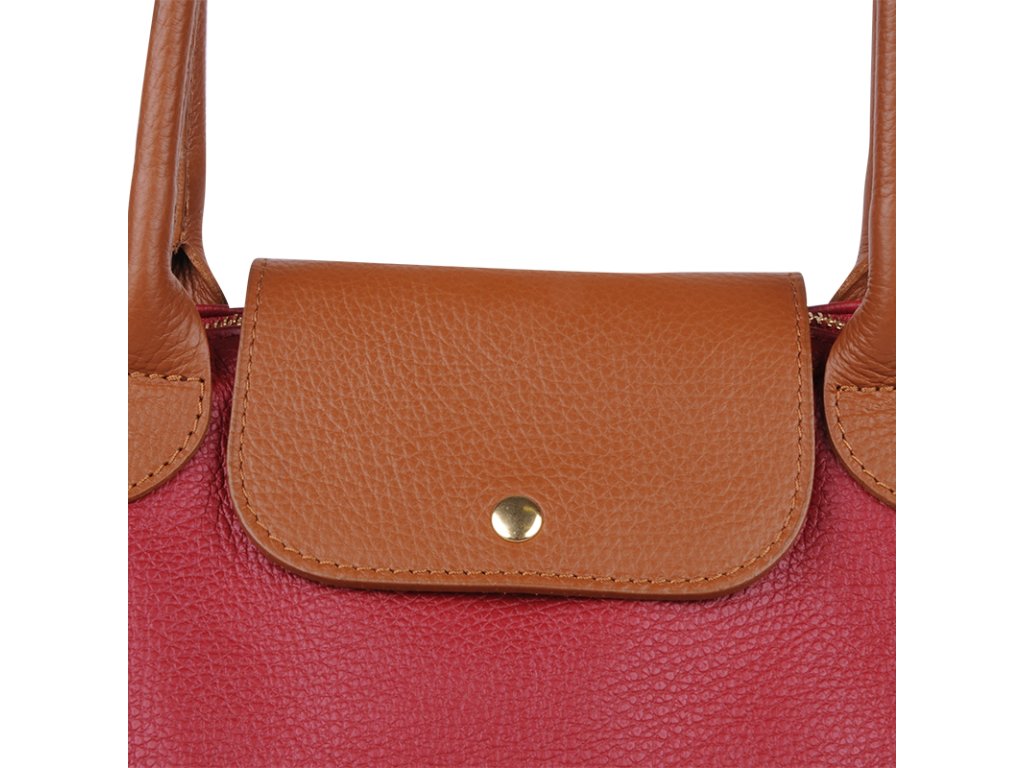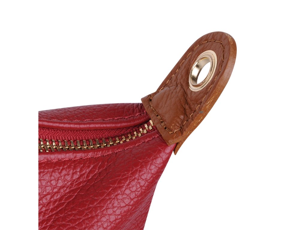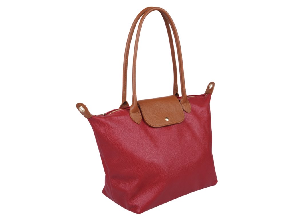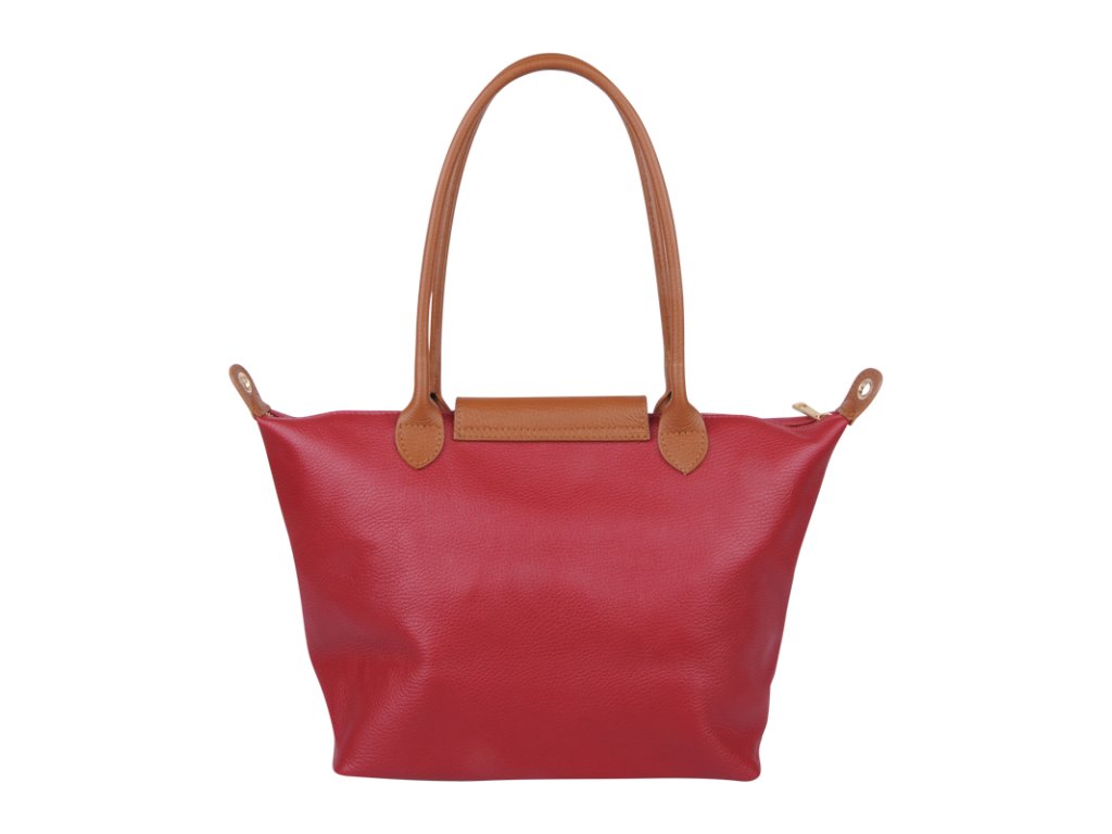 Kožená a priestranná kabelka v červenej farbe. Jednoduchý dizajn a množstvo priestoru z nej vytvára praktickú tašku, ktorá je vhodná na každodenné nosenie, do práce alebo školy. Vnútro kabelky disponuje vreckom na zips. Popruh 120 cm.