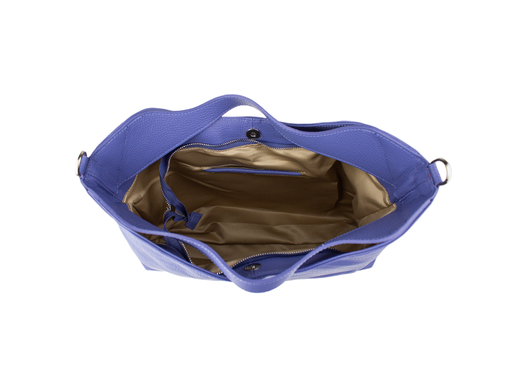 Hľadáte dokonalú rovnováhu medzi štýlom a praktickosťou? Táto priestranná dámska kabelka typu "hobo" je vyrobená z prvotriednej pravej kože s jemnou zrnitou textúrou, ktorá jej dodáva luxusný vzhľad a mimoriadnu odolnosť. Jej nadčasový dizajn v elegantnom odtieni modrej sa ľahko kombinuje s pracovným kostýmom aj voľnočasovým outfitom.