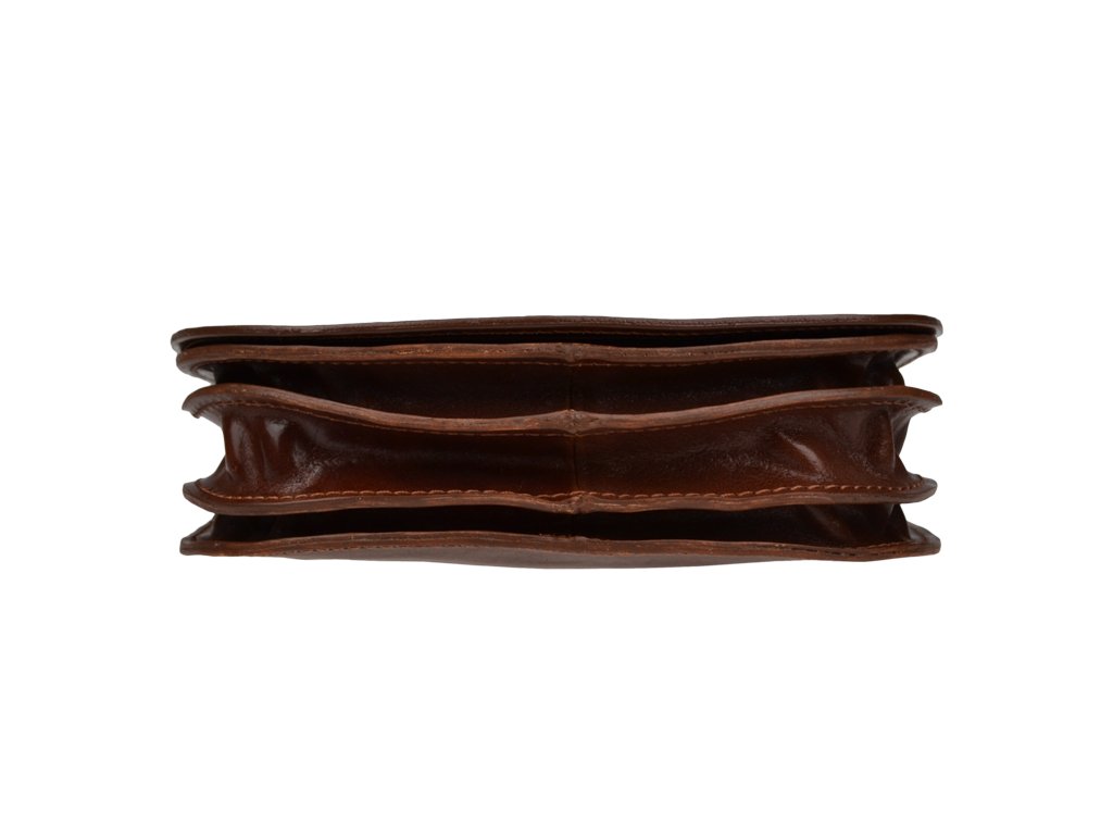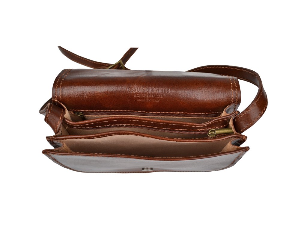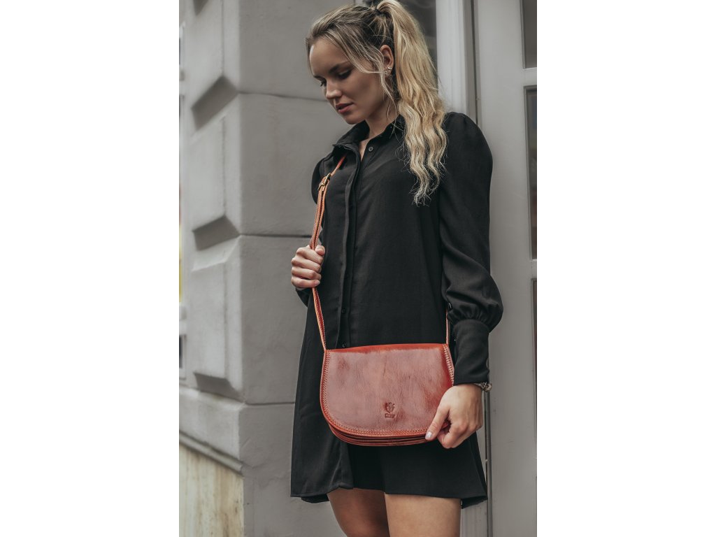 Malá šikovná kabelka so zaujímavým tvarom. Je vyrobená z pravej poctivej kože s hladkou úpravou a dobre si drží svoj tvar. Je vhodná na nosenie cez rameno alebo ako crossbody.