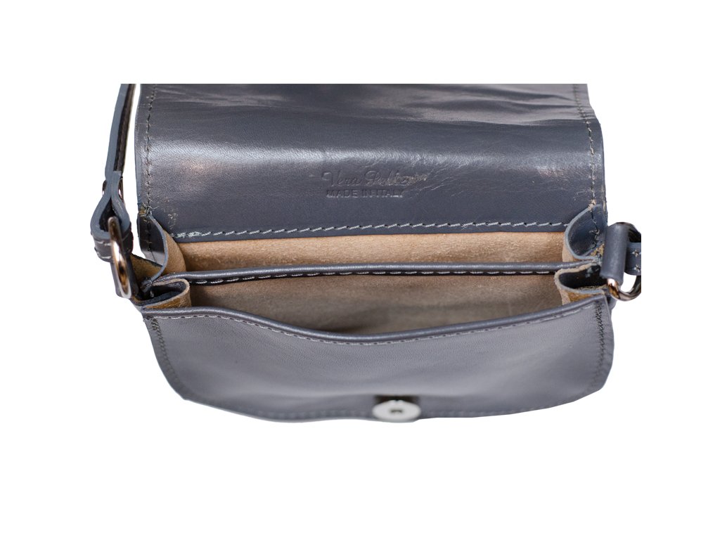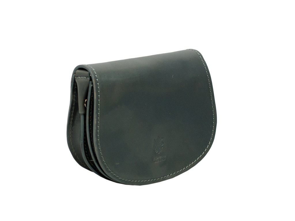 Malá šikovná kabelka so zaujímavým tvarom. Je vyrobená z pravej poctivej kože s hladkou úpravou a dobre si drží svoj tvar. Je vhodná na nosenie cez rameno alebo ako crossbody. Max. dĺžka popruhu je 120 cm.