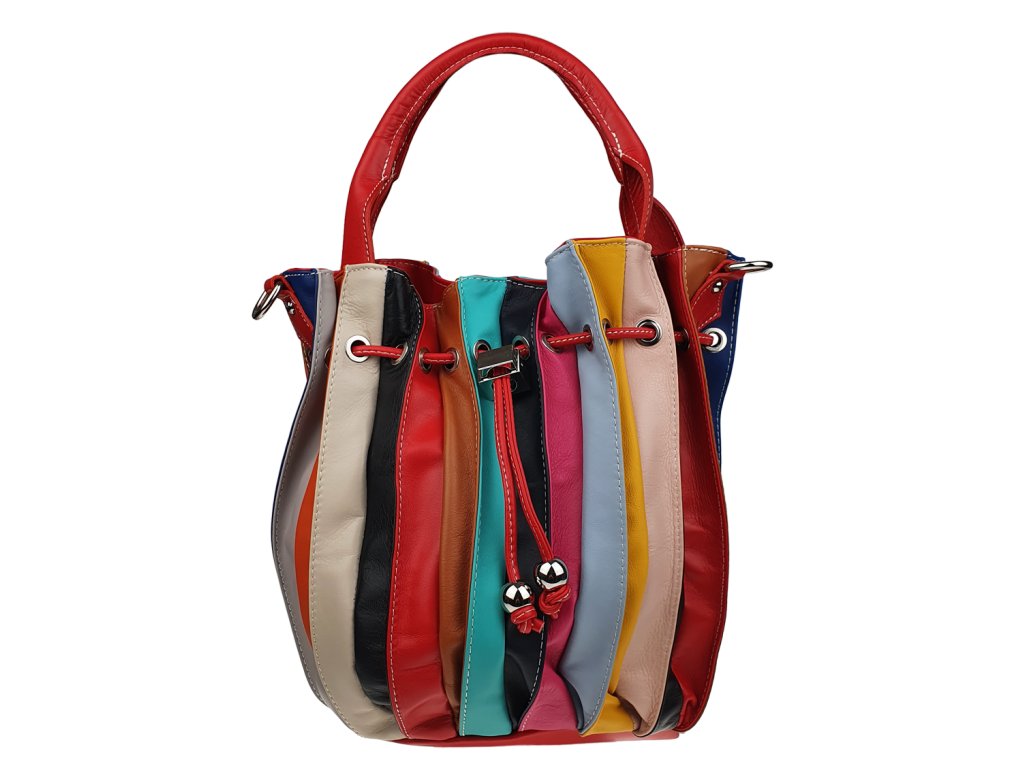 Krásna farebná kabelka s jedinečným designom. Je vyrobená z pravej poctivej kože a je vhodná na nosenie cez rameno. V prípade potreby je možné využiť prídavný nastaviteľný popruh dlžky 120 cm, ktorý je súčasťou balenia. Kabelka sa uzatvára pomocou magnetickej patentky a vo vnútri okrem dostatočného priestoru disponuje malým uzatvárateľným vreckom a dvomi priehradkami, napr. pre Váš mobli alebo kľúče.