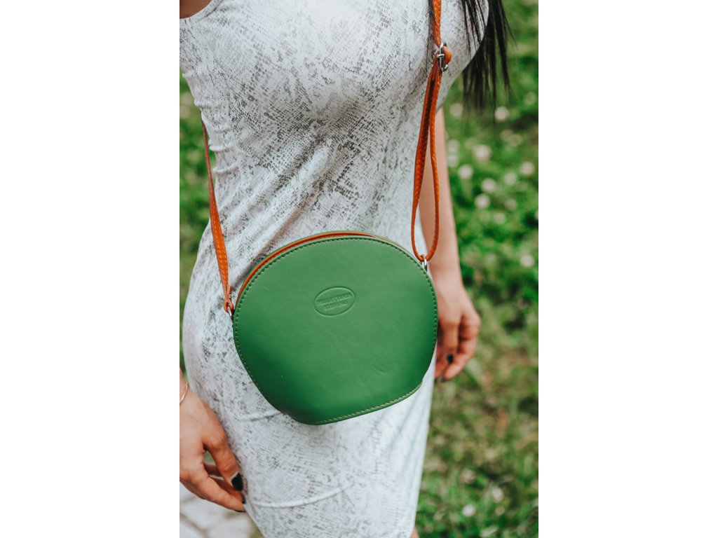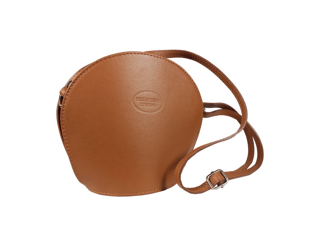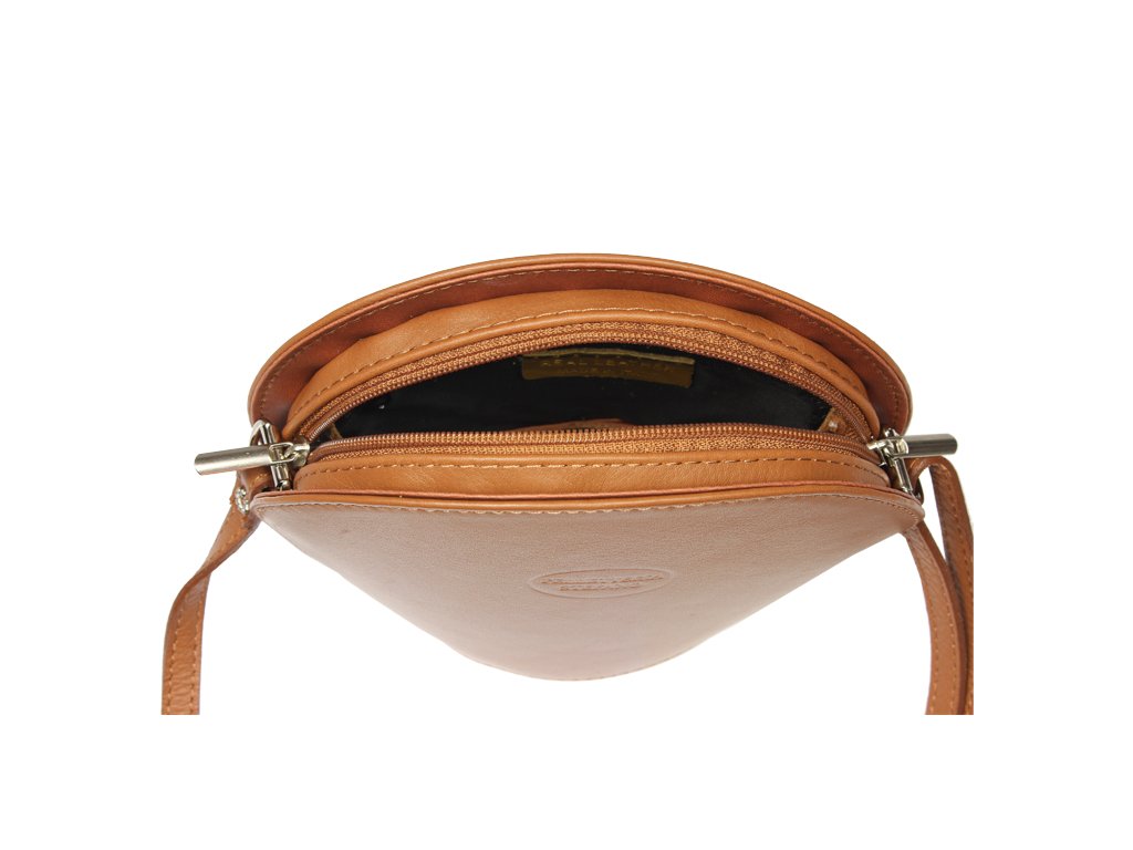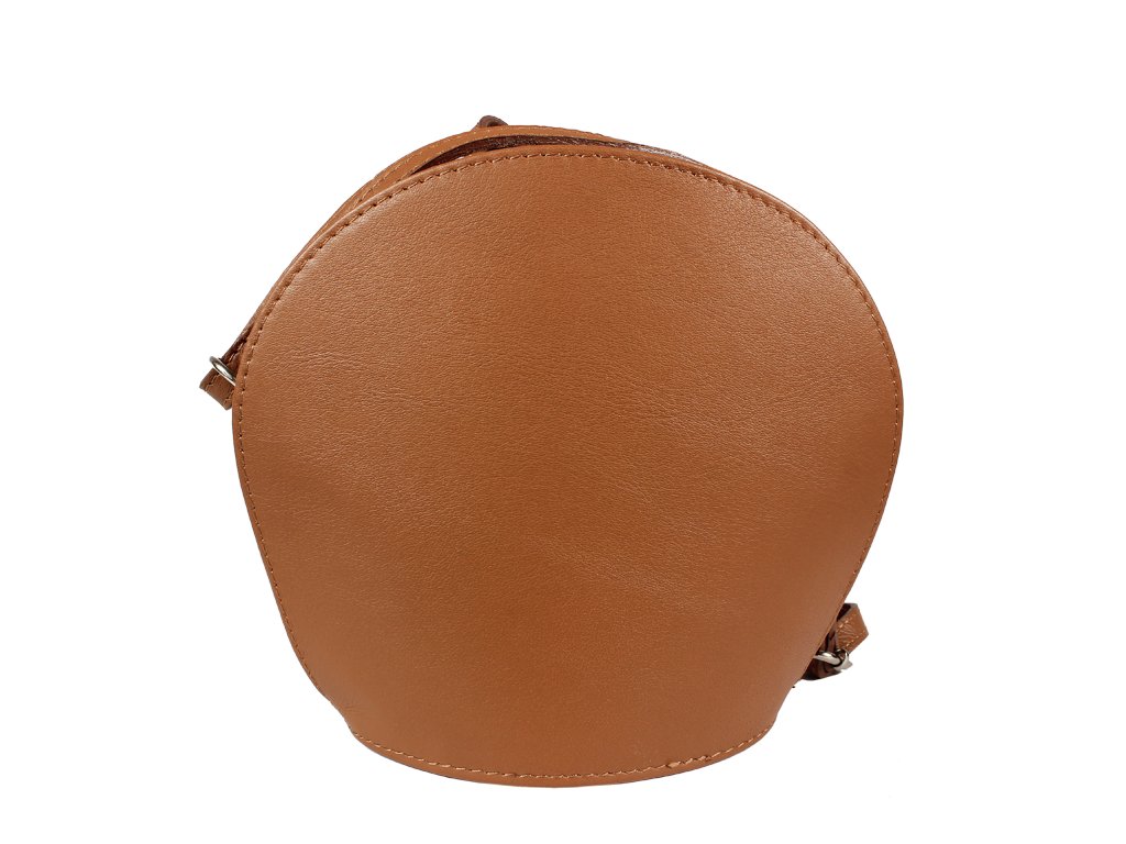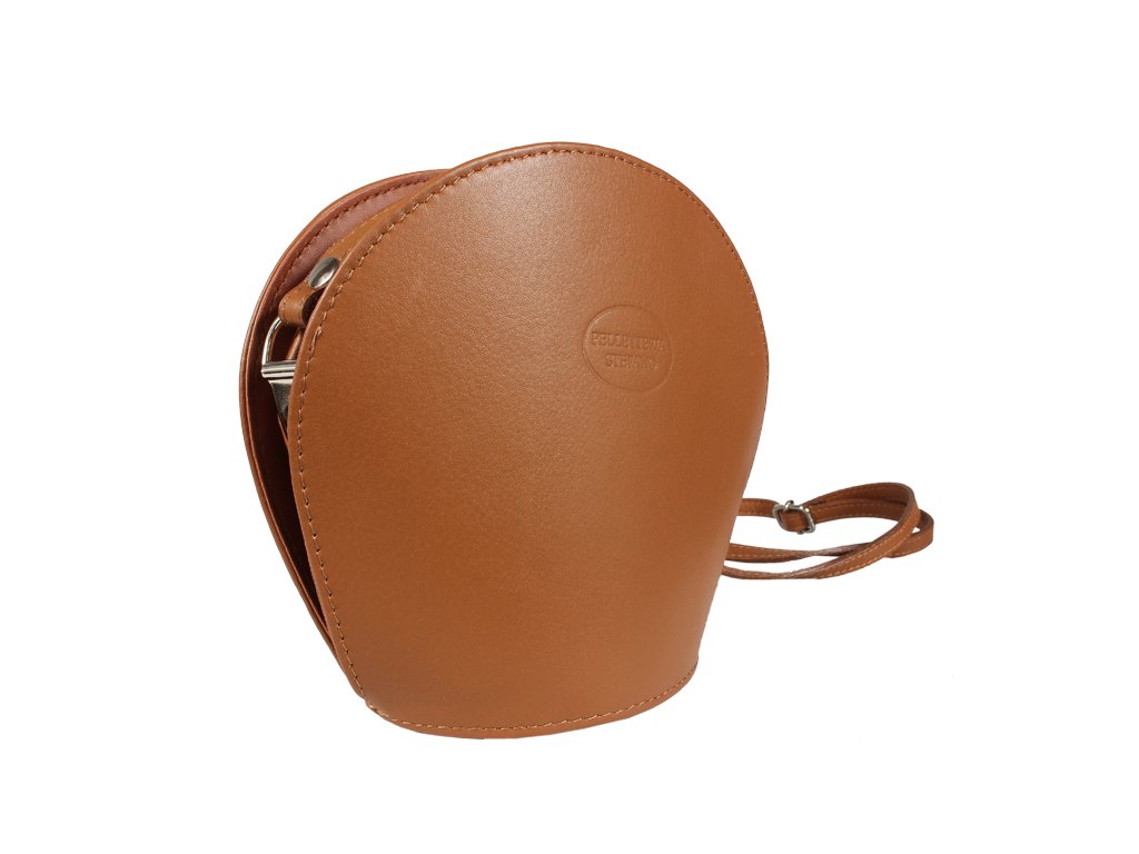 Malá šikovná kabelka so zaujímavým tvarom v hnedom prevedení. Je vyrobená z pravej poctivej kože s hladkou úpravou a dobre si drží svoj tvar. Uzatvára sa pomocou zipsu a vo vnútri disponuje malým vreckom na zips. Je vhodná na nosenie cez rameno alebo cross body (krížom). Max. dĺžka popruhu je 120 cm.