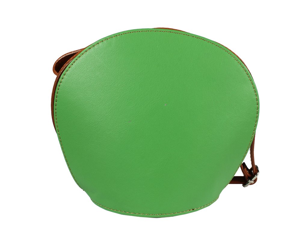 Malá šikovná kabelka so zaujímavým tvarom. Je vyrobená z pravej poctivej kože s hladkou úpravou a dobre si drží svoj tvar. Uzatvára sa pomocou zipsu a vo vnútri disponuje malým vreckom na zips. Je vhodná na nosenie cez rameno alebo cross body (krížom). Max. dĺžka popruhu je 120 cm.