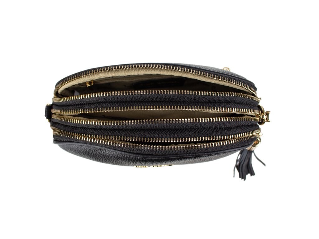 Praktická kabelka vyrobená z hovädzej kože v čiernej farbe. Je vhodná na nosenie cez rameno alebo crossbody. Súčasťou balenia je prídavný nastaviteľný pásik s dĺžkou 130 cm. Uzatvára sa pomocou zipsu. Kabelka má 3 samostatne uzatvárateľné priehradky.