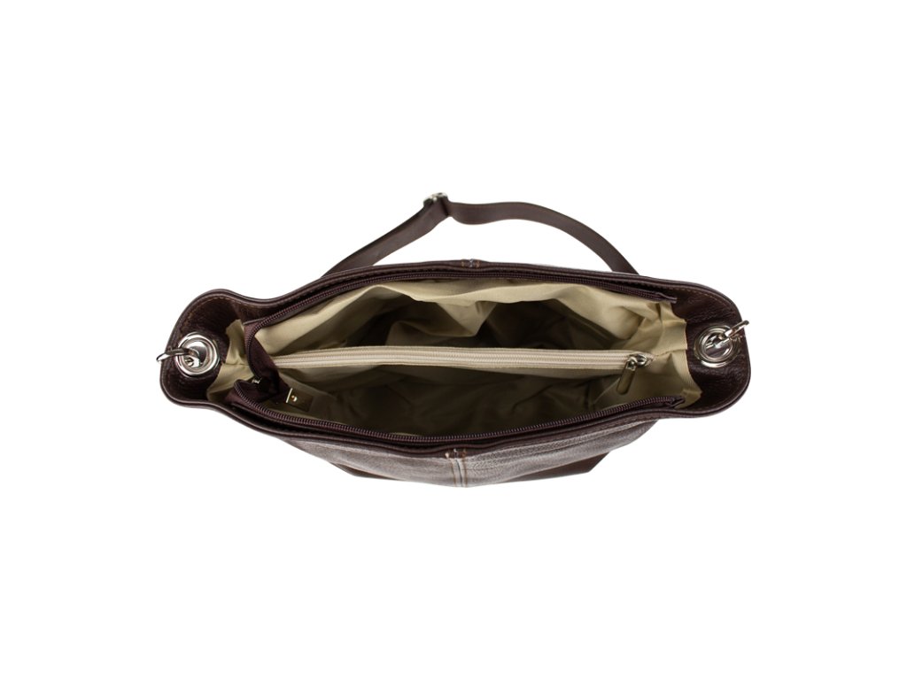 Praktická kabelka uzatvárateľná na zips, nositeľná cez rameno alebo cross-body (krížom). Vo vnútri disponuje priečkou, ktorá zároveň slúži ako úložná priehradka so zipsom a na bočnej stene sa nachádza ďalšie zipsovacie vrecko. Hĺbka jej dna je 13 cm. Kabelka má naviac nastaviteľný popruh s maximálnou dĺžkou cca 120 cm.