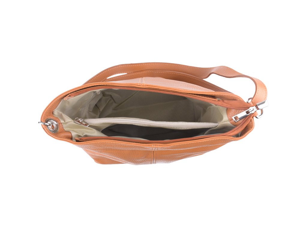 Praktická kabelka uzatvárateľná na zips, nositeľná cez rameno alebo cross-body (krížom). Vo vnútri disponuje priečkou, ktorá zároveň slúži ako úložná priehradka so zipsom a na bočnej stene sa nachádza ďalšie zipsovacie vrecko. Hĺbka jej dna je 13 cm. Kabelka má naviac nastaviteľný popruh s maximálnou dĺžkou cca 120 cm.