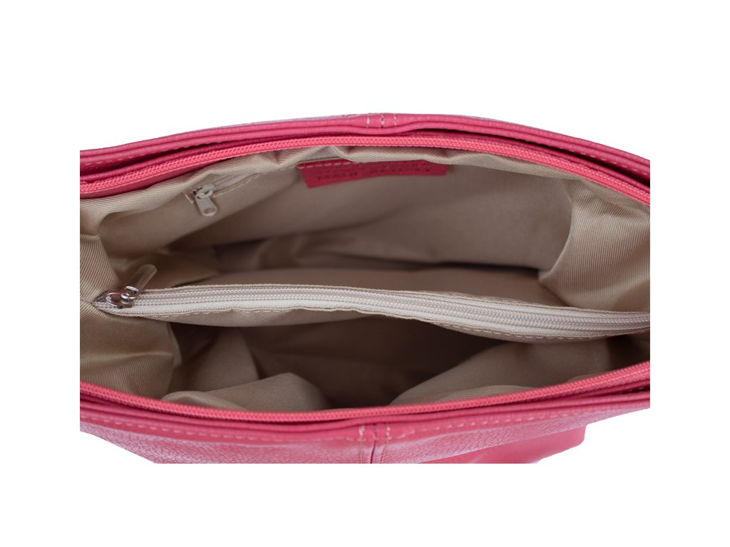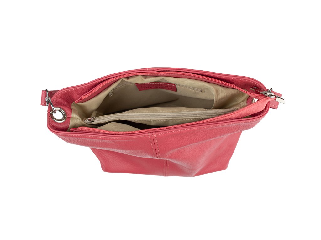 Praktická kabelka uzatvárateľná na zips, nositeľná cez rameno alebo cross-body (krížom). Vo vnútri disponuje priečkou, ktorá zároveň slúži ako úložná priehradka so zipsom a na bočnej stene sa nachádza ďalšie zipsovacie vrecko. Hĺbka jej dna je 13 cm. Kabelka má naviac nastaviteľný popruh s maximálnou dĺžkou cca 120 cm.