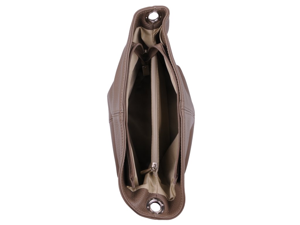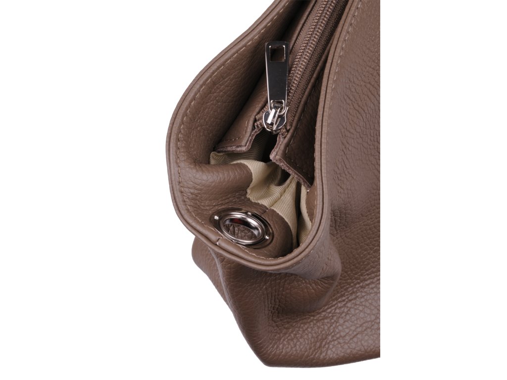 Praktická kabelka uzatvárateľná na zips, nositeľná cez rameno alebo cross-body (krížom). Vo vnútri disponuje priečkou, ktorá zároveň slúži ako úložná priehradka so zipsom a na bočnej stene sa nachádza ďalšie zipsovacie vrecko. Hĺbka jej dna je 13 cm. Kabelka má naviac nastaviteľný popruh s maximálnou dĺžkou cca 120 cm.