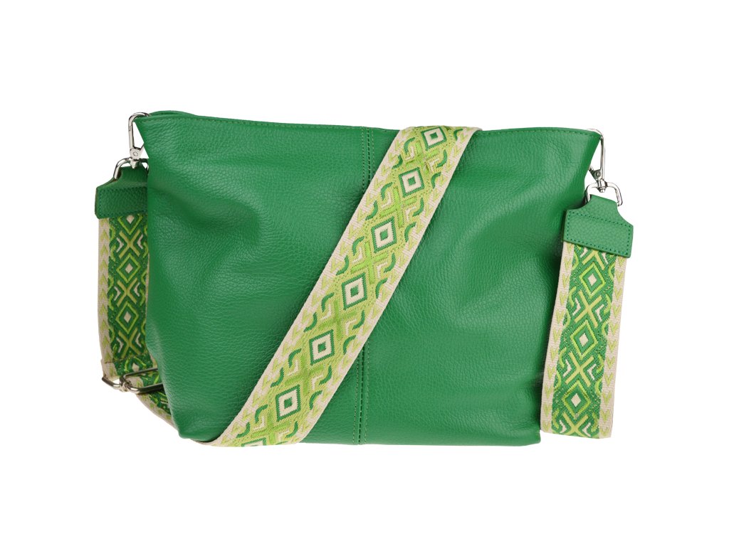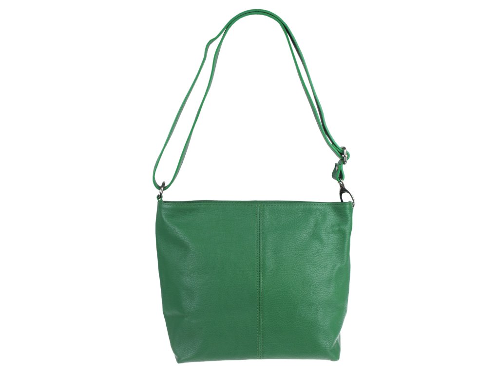 Praktická zelená kabelka uzatvárateľná na zips, nositeľná cez rameno alebo cross-body (krížom). Vo vnútri disponuje priečkou, ktorá zároveň slúži ako úložná priehradka so zipsom a na bočnej stene sa nachádza ďalšie zipsovacie vrecko. Hĺbka jej dna je 13 cm. Kabelka má naviac nastaviteľný popruh s maximálnou dĺžkou cca 120 cm.