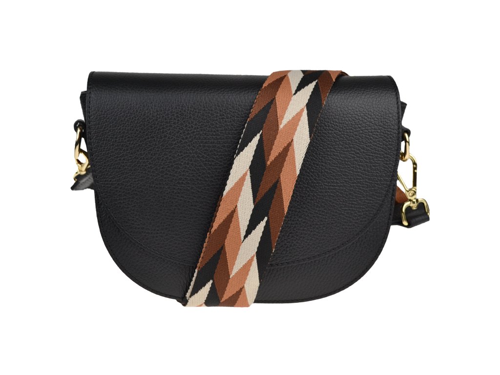 Čierna kabelka nositeľná cez rameno či cross-body (krížom). Táto kožená kabelka je uzatvárateľná na patentku a vnútri nájdeme priehradku na zips.