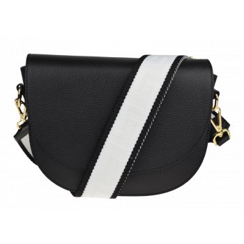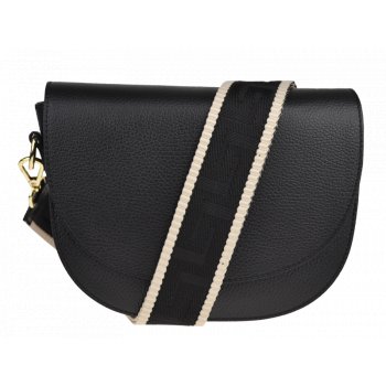 Čierna kabelka nositeľná cez rameno či cross-body (krížom). Táto kožená kabelka je uzatvárateľná na patentku a vnútri nájdeme priehradku na zips.