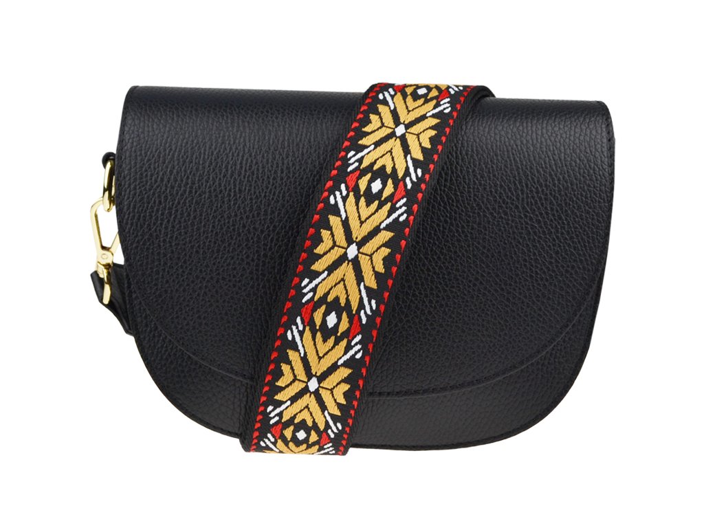 Čierna kabelka nositeľná cez rameno či cross-body (krížom). Táto kožená kabelka je uzatvárateľná na patentku a vnútri nájdeme priehradku na zips.