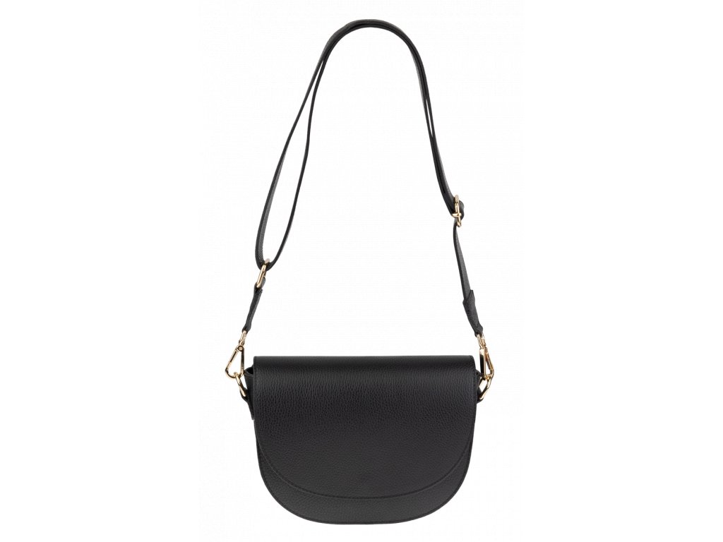 Čierna kabelka nositeľná cez rameno či cross-body (krížom). Táto kožená kabelka je uzatvárateľná na patentku a vnútri nájdeme priehradku na zips. Kabelka má nastaviteľný popruh s maximálnou dĺžkou cca 140 cm.