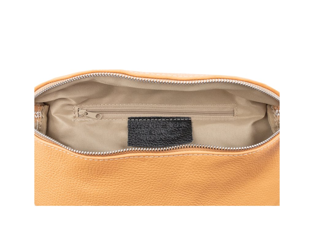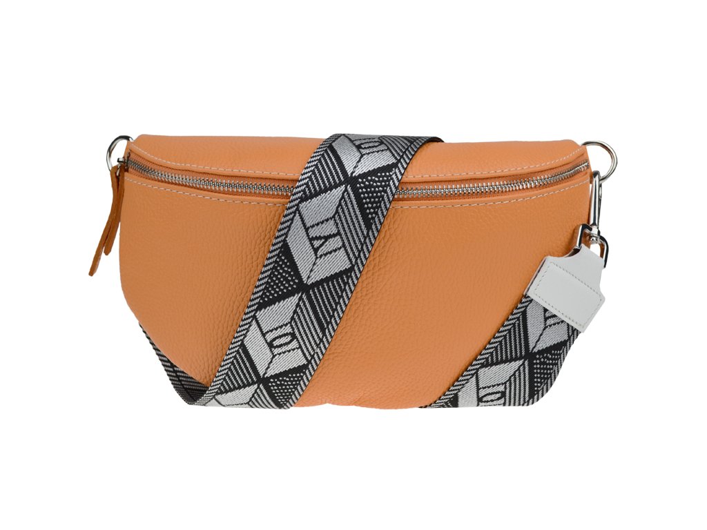 Elegantná, no zároveň veľmi praktická ľadvinka malých rozmerov v oranžovej farbe vyrobená z pravej kože.