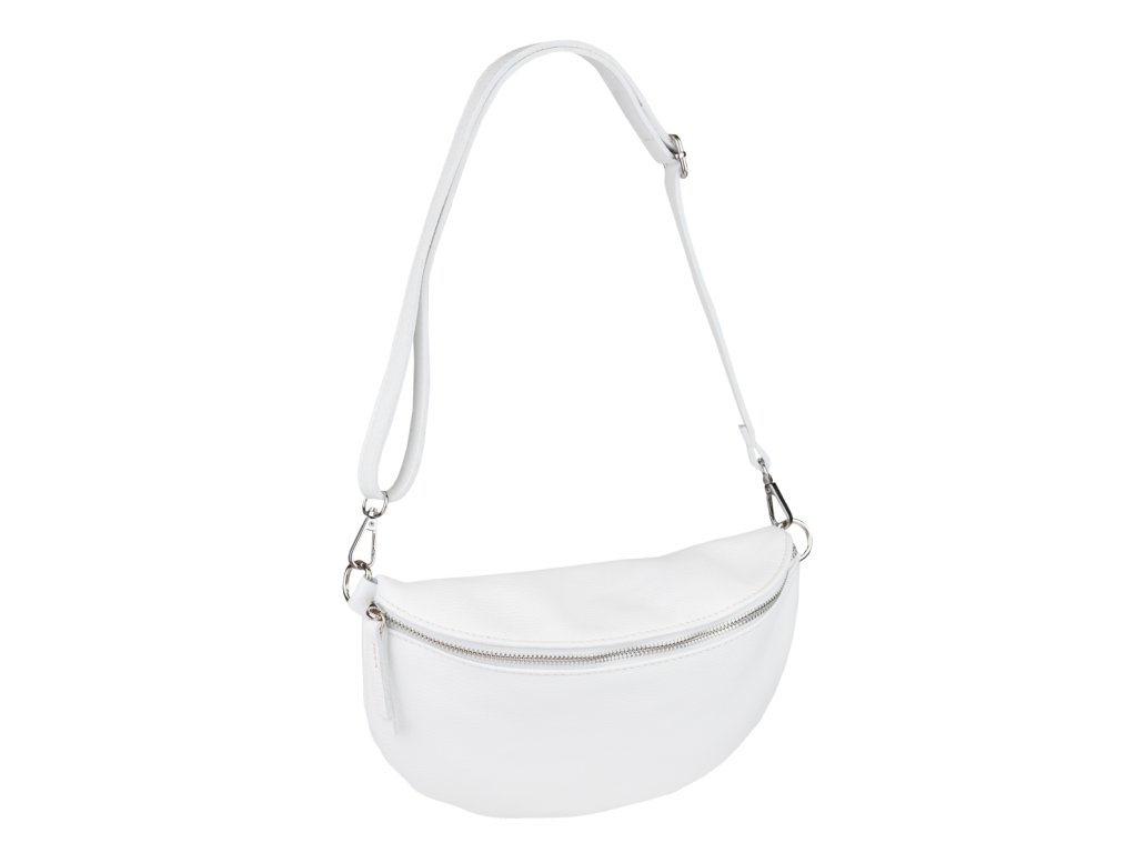 Elegantná, no zároveň veľmi praktická ľadvinka malých rozmerov v bielej farbe vyrobená z pravej kože.