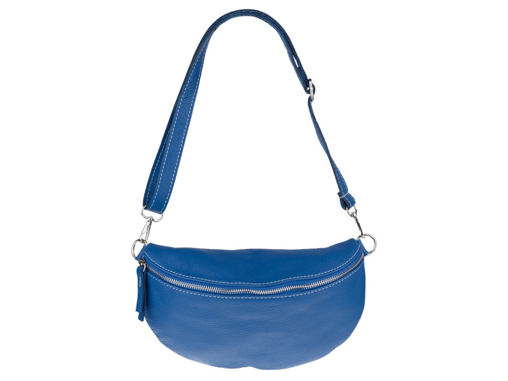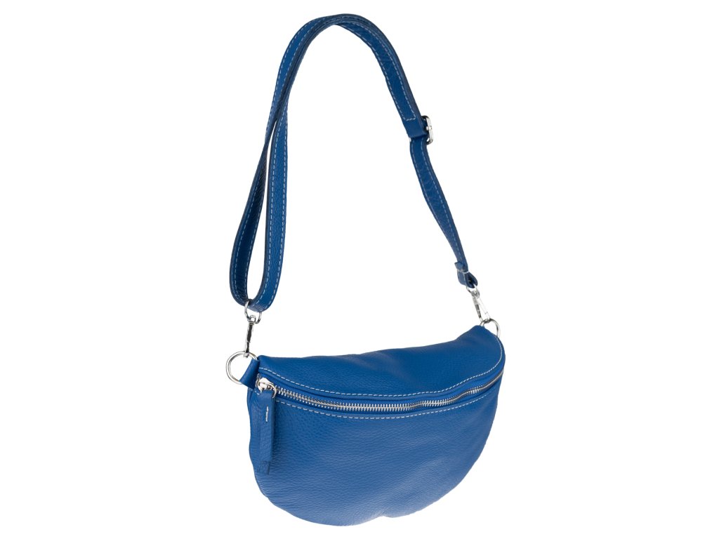 Elegantná, no zároveň veľmi praktická ľadvinka malých rozmerov v modrej farbe vyrobená z pravej kože.