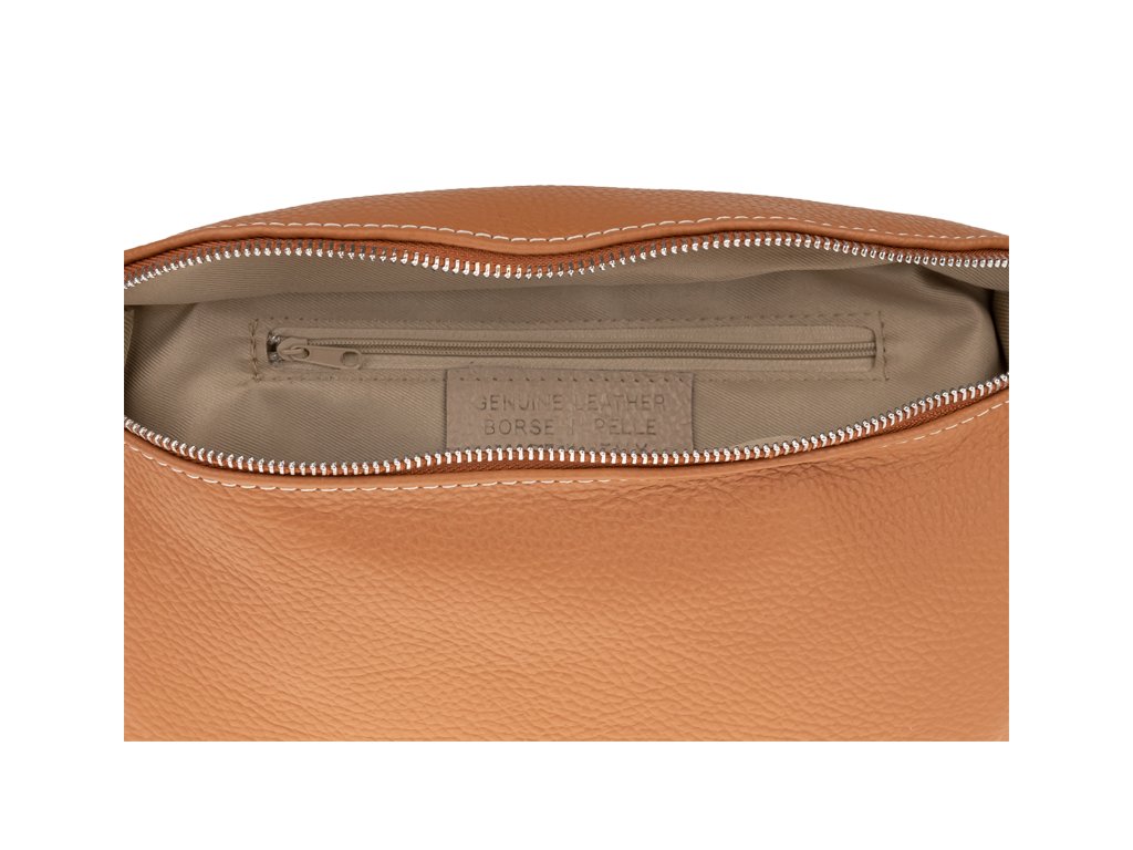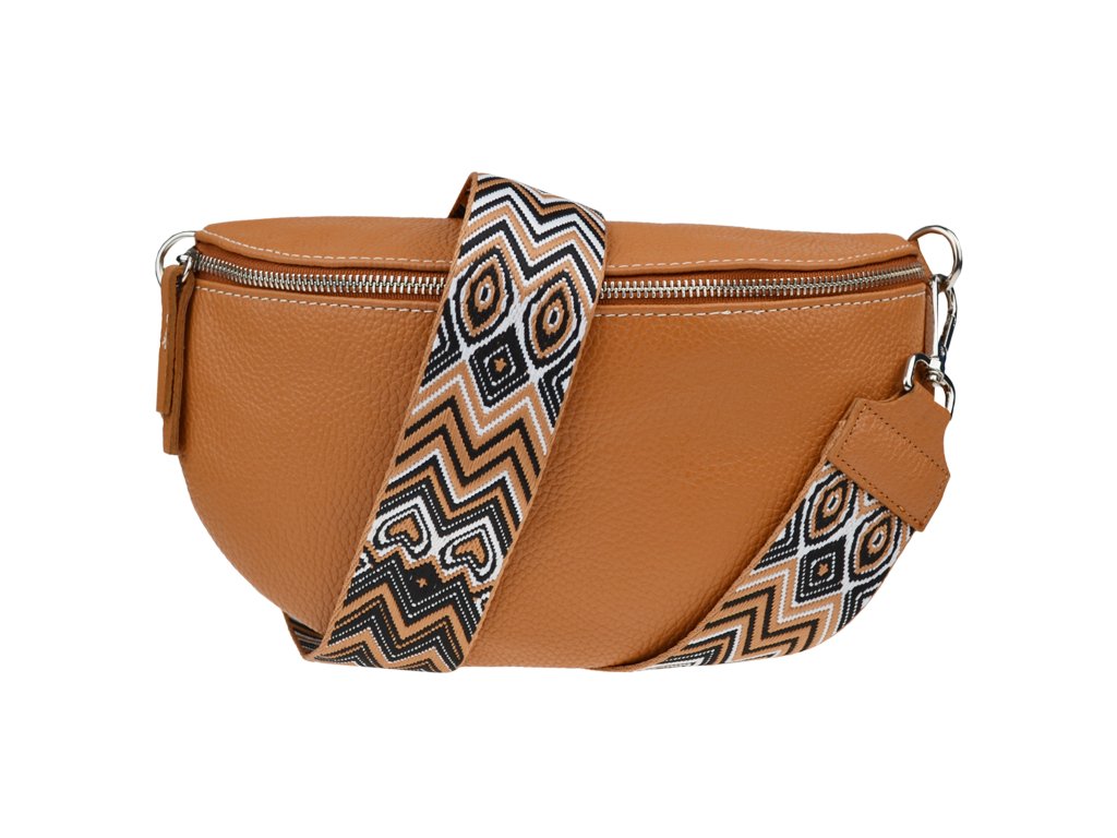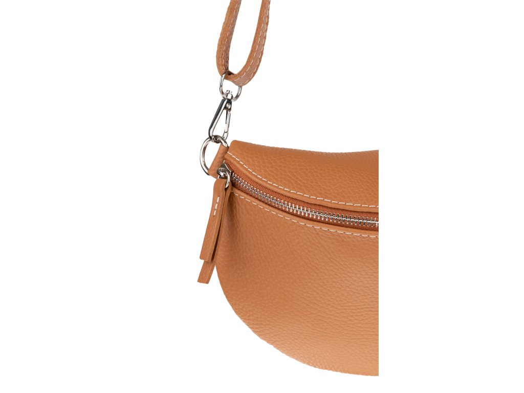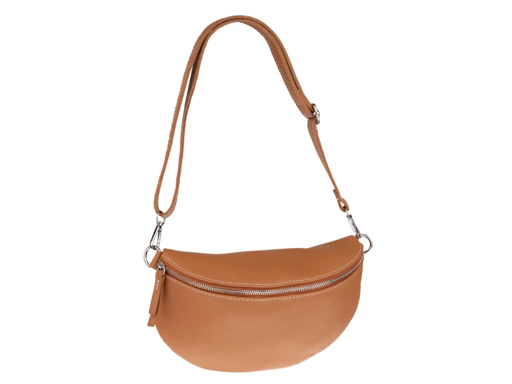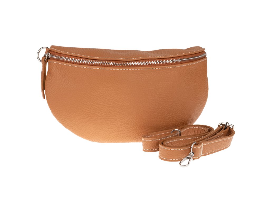 Elegantná, no zároveň veľmi praktická ľadvinka malých rozmerov v camel farbe vyrobená z pravej kože.