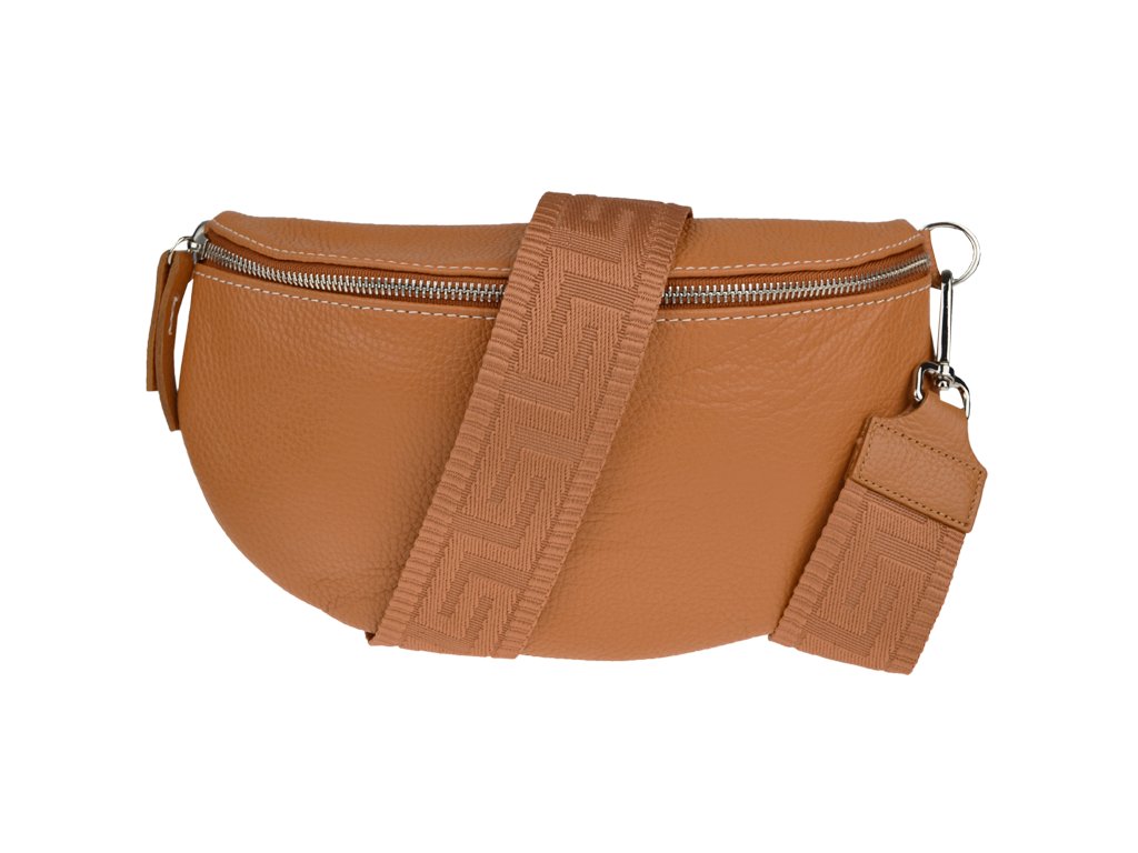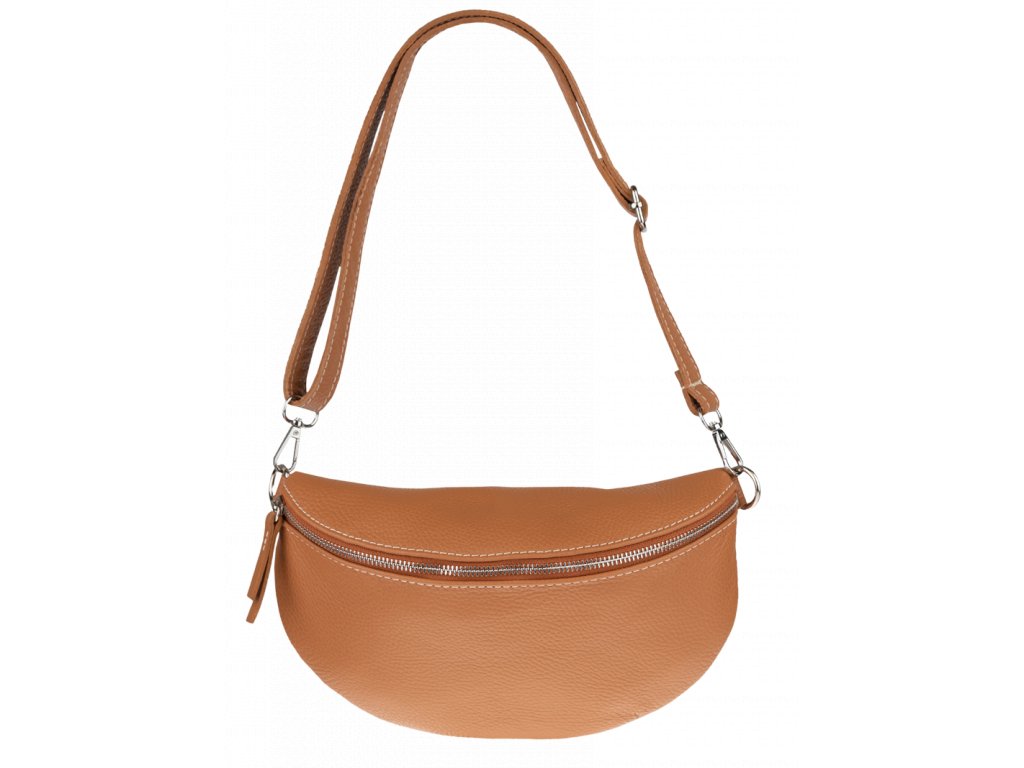 Elegantná, no zároveň veľmi praktická ľadvinka malých rozmerov v camel farbe vyrobená z pravej kože.
