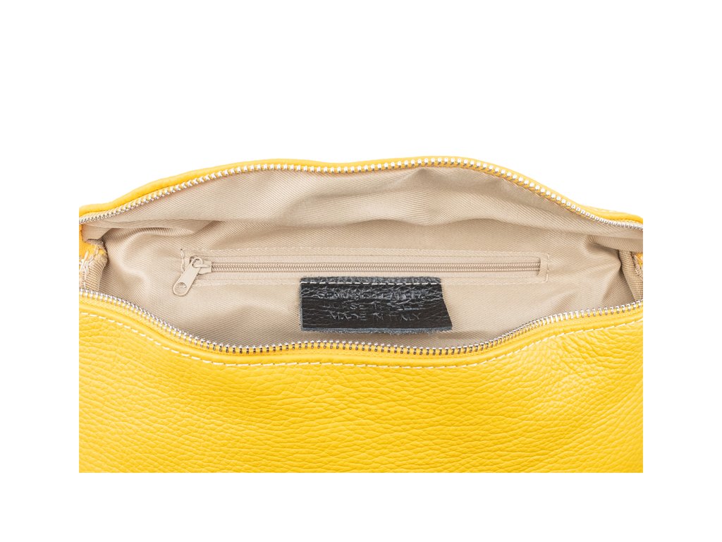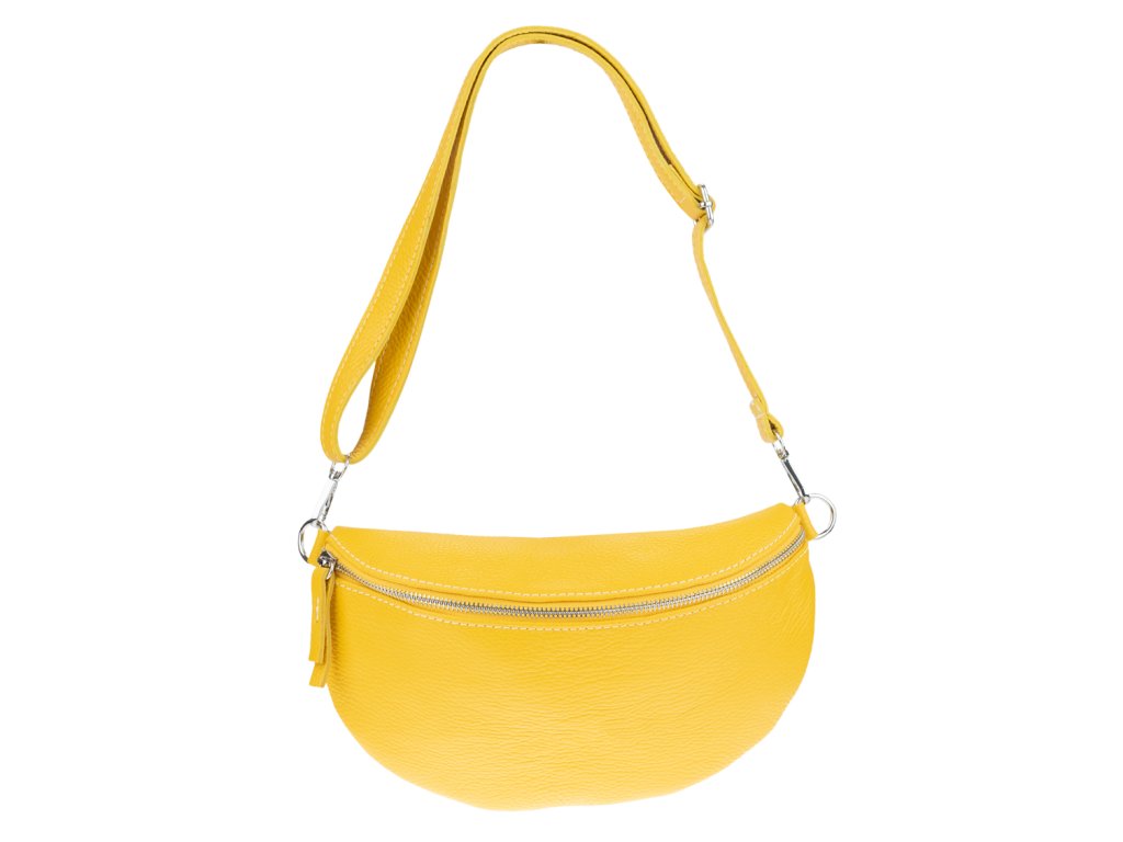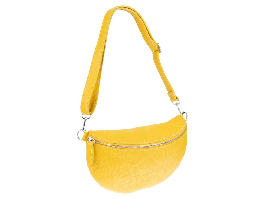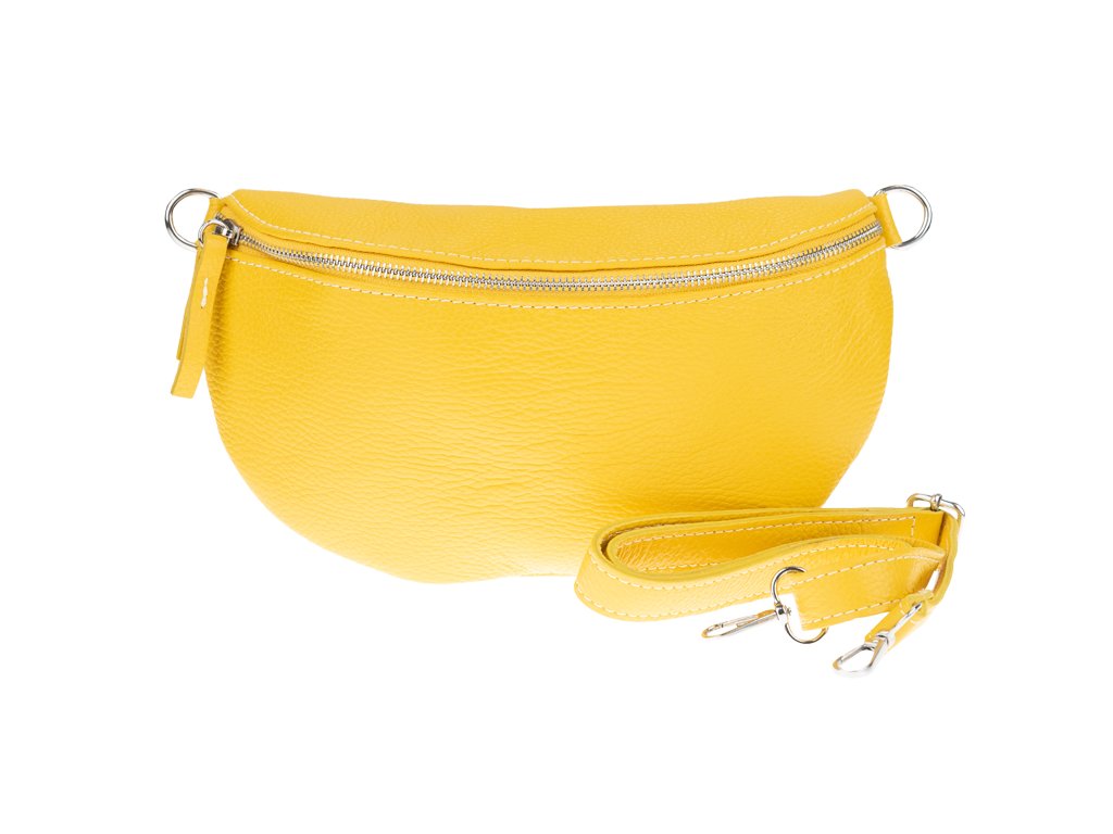 Elegantná, no zároveň veľmi praktická ľadvinka malých rozmerov v žltej farbe vyrobená z pravej kože.