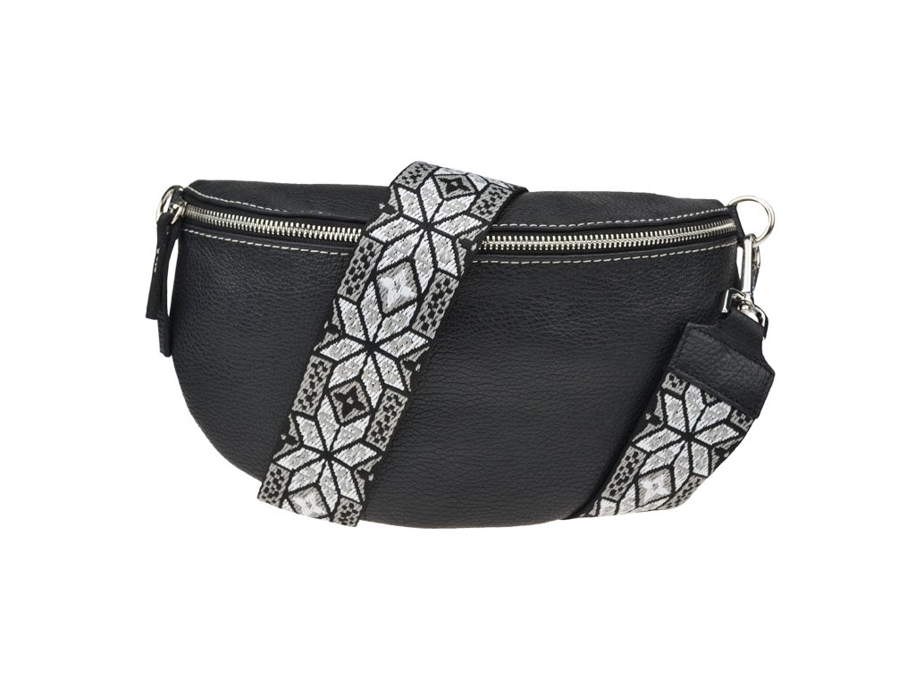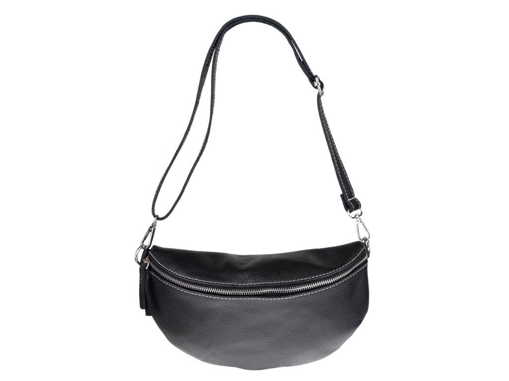 Elegantná, no zároveň veľmi praktická ľadvinka malých rozmerov v čiernej farbe vyrobená z pravej kože.