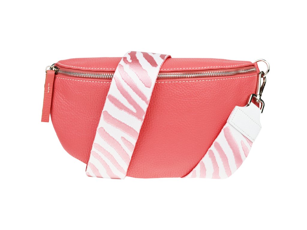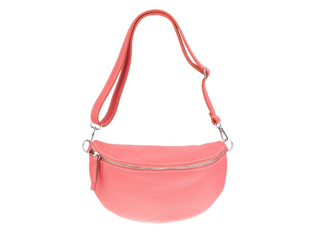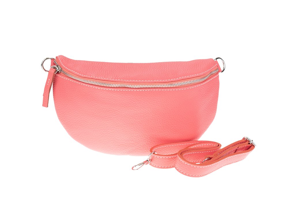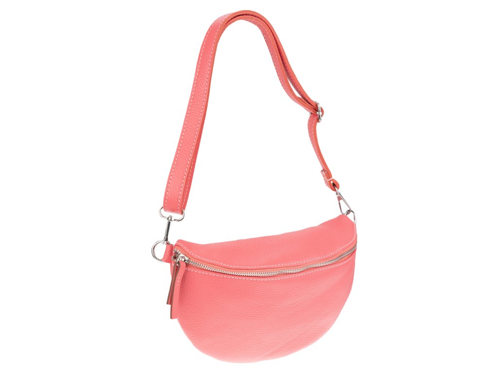 Elegantná, no zároveň veľmi praktická ľadvinka malých rozmerov v ružovej farbe vyrobená z pravej kože.