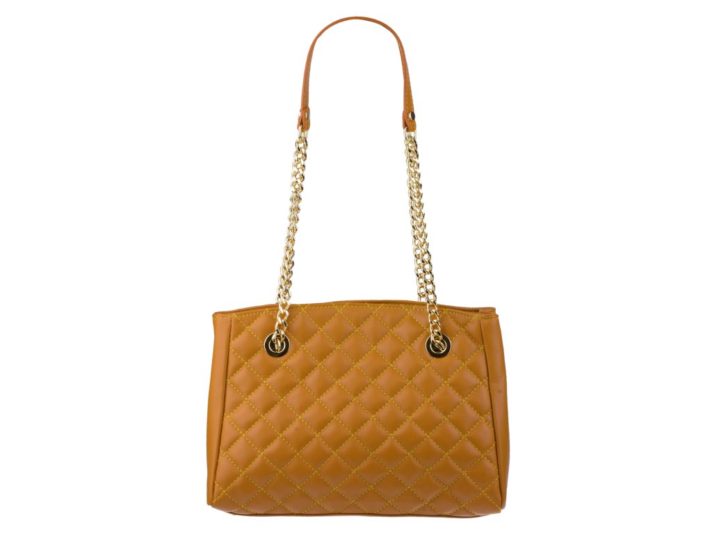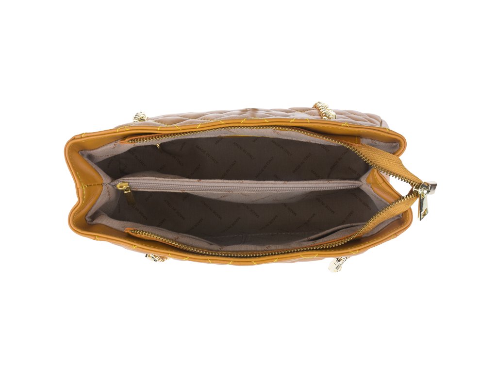 Kožená, elegantná kabelka ve žltej farbe v modernom designe. Vo vnútri disponuje úložnou priehradkou na zips.